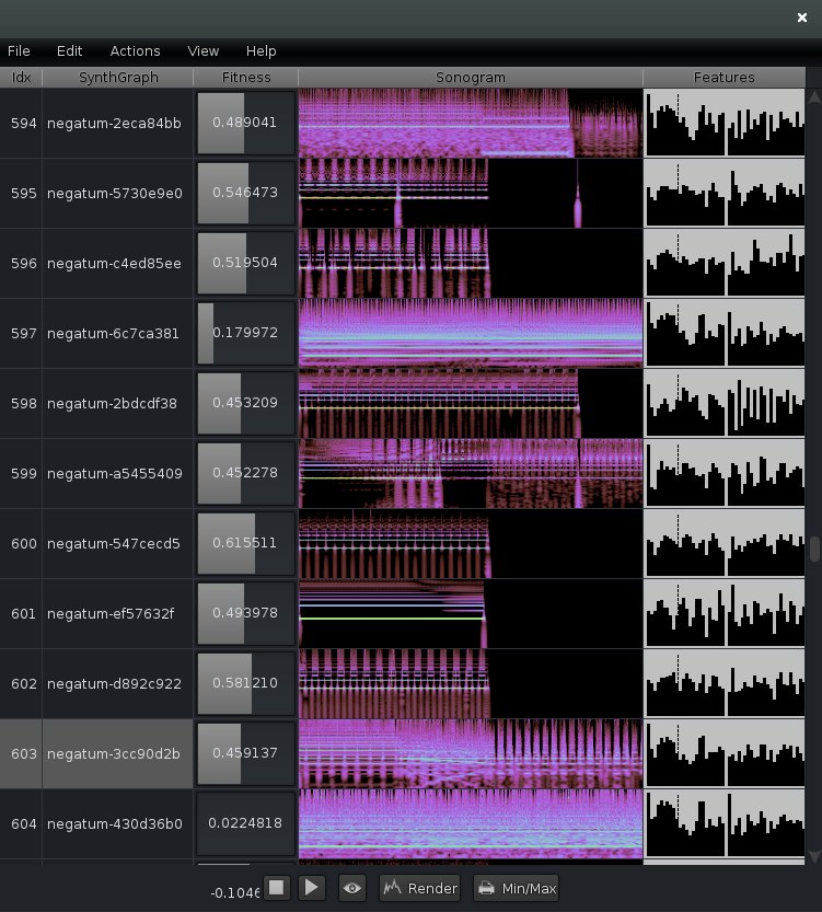 The conception of Imperfect Reconstruction took its starting point with the wish to create a compound sound installation in which the systems that I (SoundProcesses) and David (rattle) created were put together. SoundProcesses is more of a programming environment than a particularly opinionated piece of sound art in itself. You have to implement a specific compositional strategy on top of it. The approach I came up with was given the name Negatum, a play on the word mutagen that had been used in the preceding year to denote my experimentation with genetic algorithms for sound synthesis processes. Through an evolutionary algorithm, sound structures would be found by automatic programming of signal processing blocks that are evaluated with respect to their potential to create sounds resembling a given (real world) sound. This type of algorithm had been employed, each time in different ways, in the installation Configuration and in the fixed media piece Grenzwerte.