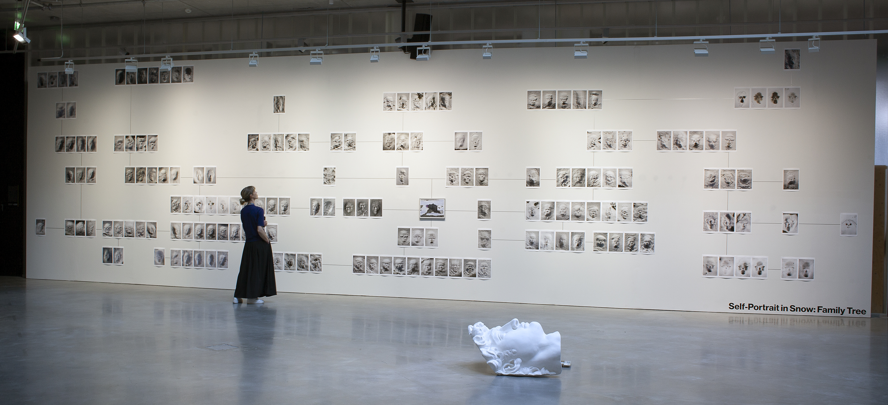Starting with the images of her ancestors to portrayals of her unborn children, the speculative record of 190 self-portraits yielded the phenotype of her entire clan. Among the blindly generated portrait she was also able to identify some serendipitous imprints, such as the portrait of one famous Finn, Urho Kekkonen, the longest serving President of the Republic. This ephemeral tribe emerging from the snow allows us to envision a pictorial DNA reaching from totemic past towards future generations.