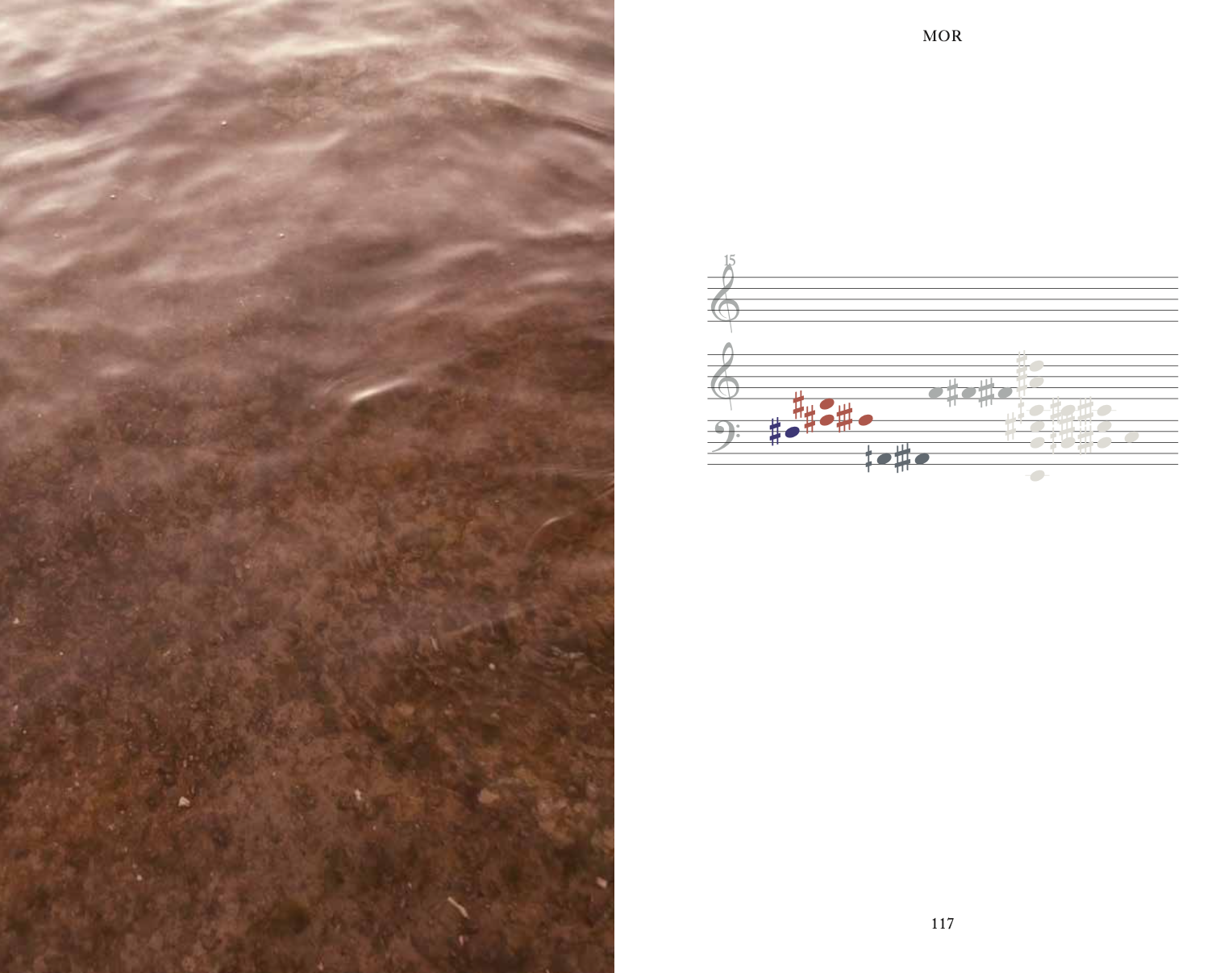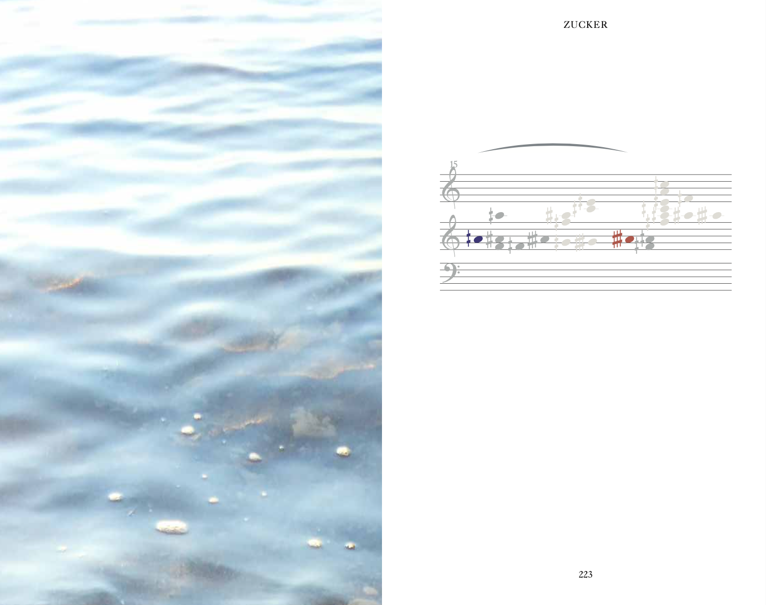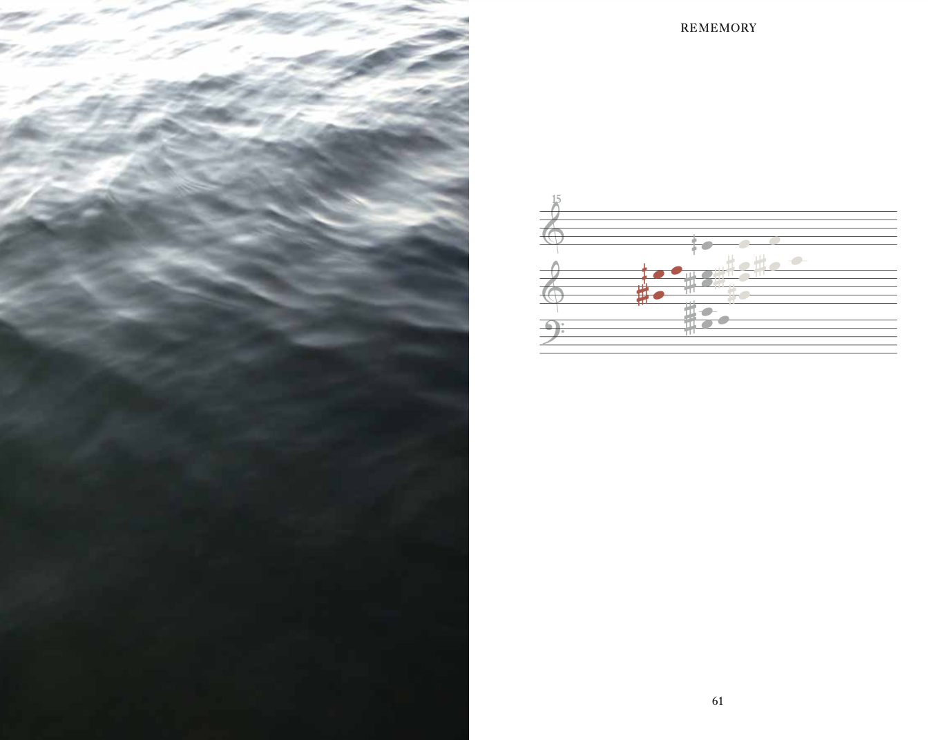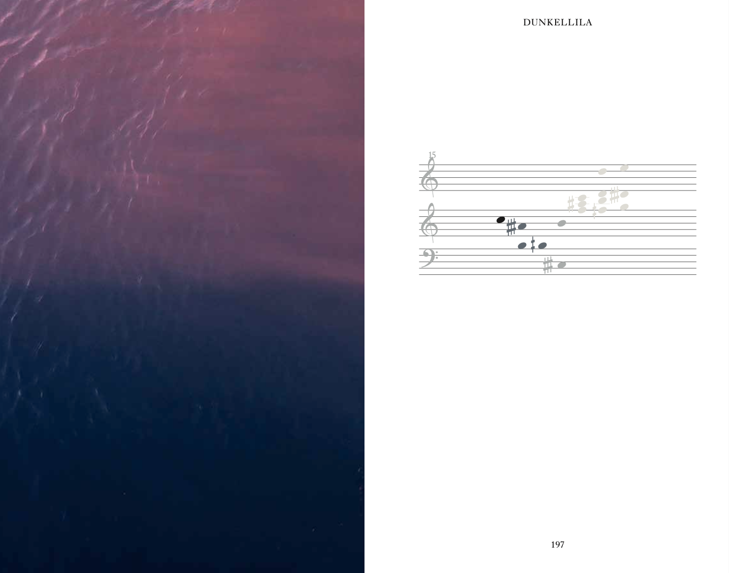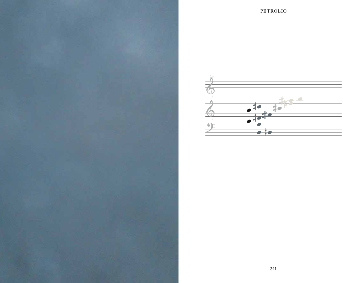 The piece begins with a layer of chords in the strings from the chapters "PETROLIO" and "REMEMORY". Despite their respective idiosyncratic expressive power, they form, in my mind, a sort of ice layer beneath, in which the musical material in the second violins moves, interrupted by a kind of harmonization in the rear desks of the string sections.