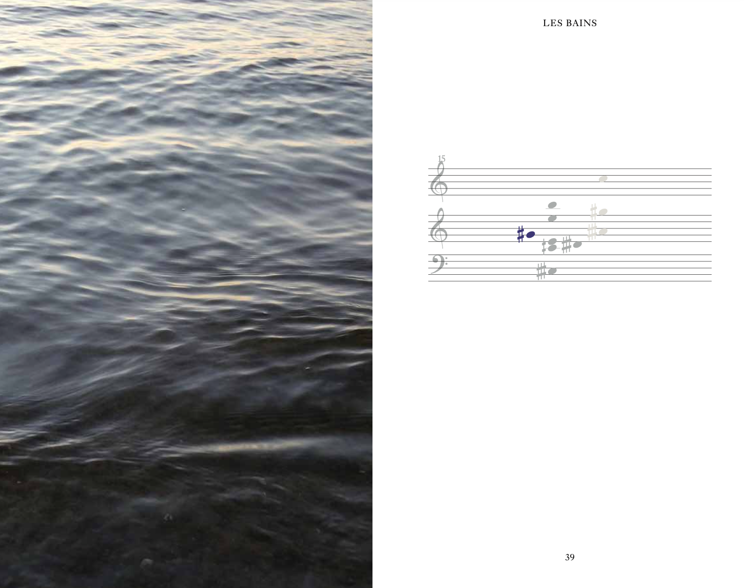 The chords from the book BOOK OF CHORDS play a central role in these pieces. Some of them are old chords that I found 2017 for example, like GLORIA and GEBET, and I reuse them. Some are chords that I recently searched for specifically for a piece. For instance, I searched for the chords from the chapter LES BAINS for the piece NEROLI (2021). A chord group with a warm, physical and enveloping expression which qualities I try to capture in the referring poem and photographs to the chord group. If I were to search for this expression again in the future, I can refer back to these chords. If I'm looking for an expression that isn't yet in my catalogue, I will search again. So, it's the expression that I have in mind that comes first, then the search for the right chords and after, I can write the piece.