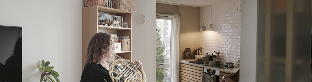 In a similar way, Lemur have engaged in musical readings of acoustic spaces. In a project called Critical Band, they have incorporated the unique acoustic fingerprint of a given reverberant space, such as a church or a concert hall, as a fifth instrument in the ensemble through precise acoustic analyses. Before this, they made music for Villa Stenersen in Oslo, a 1939 villa created in a playful take on functionalism by architect Arne Korsmo. The quartet spread out in the villa's rooms, playing individually and together, not unlike what happens in the more everyday surroundings of Apartment Portraits.