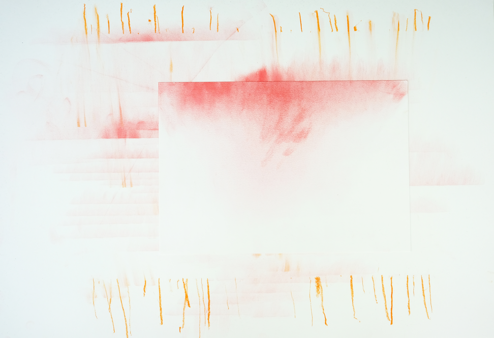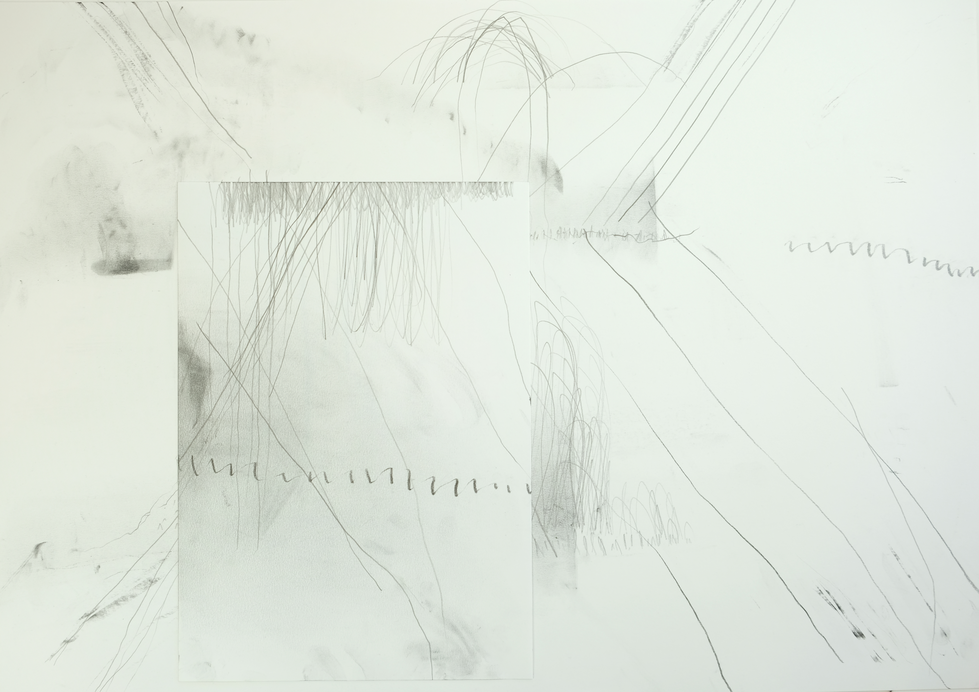 I. Expecting. Ex-pecting. Awaiting. Not yet. Sinking. Folding. Tending. Continuity. Conducive. Differentiation. Trembling thresholds. Open sensing. Delicate decisions. Wavering edge. Lines, soft, fluid. Con-currence. Curvature. Connection. Continuity, coexisting. Co-operation. Realising. Disappearing. Soft letting. Interweaving. Looking, waiting. It is not obvious. Decisions arising - materialising. Trembling. Bending. Sensing. Not to need to know, to come into a mode of engagement. Hovering light interplay, edges blurring. To activate a space and yet leave it open. Deactivating the willing. Sinking, dissolving. There is a call to enter into dialogue, a language also allowing for no words. Soft, fluid, pulsing. Ex-pecting. What comes through - looking without seeing. An empty frame - this pulsing of listening and inbetween-ness. This being at the edge, practising concurrently. Continuity and discontinuity. Receptivity at the edges to what might be unfolding. Co-existing. It requires a different tone of voice - expanding. Coming into contact. Ob-serving. A rupture, a tangible rhythm. Decisions are not made. Decision arising, materialising. Trembling, not so tangible. There is the matter of relaxation. Sensitivity to these thresholds that happen unexpectedly. Soft quality - almost dusk-like. This play of momentums in all directions. Making differences. Blankness opening, a question of receiving. A mark, a gap. All this interweaving. This drifting in and out. In repetition there is a quality I can sink into. Again, awareness; no negotiating. Again, unfolding. Unfolding appearances. Something happens and it becomes a possibility. There is a call there, an interest to join. The bleed of the present, waiting, waiting, developing.