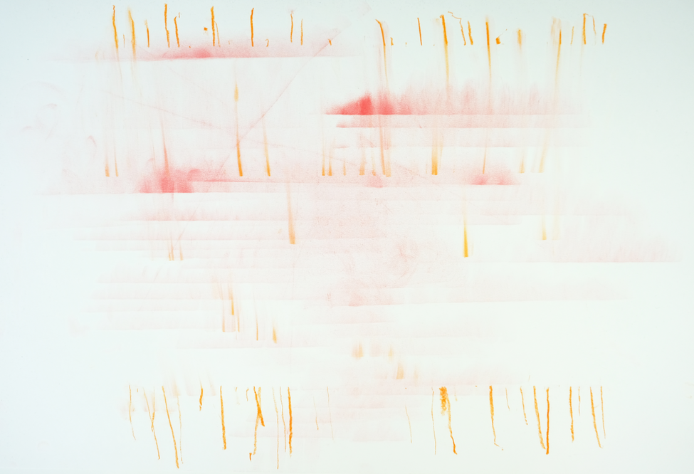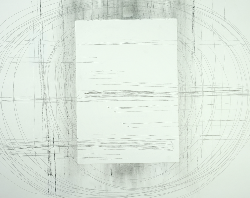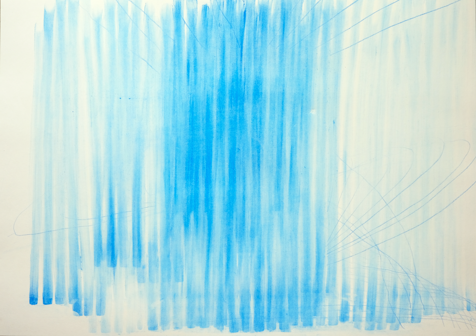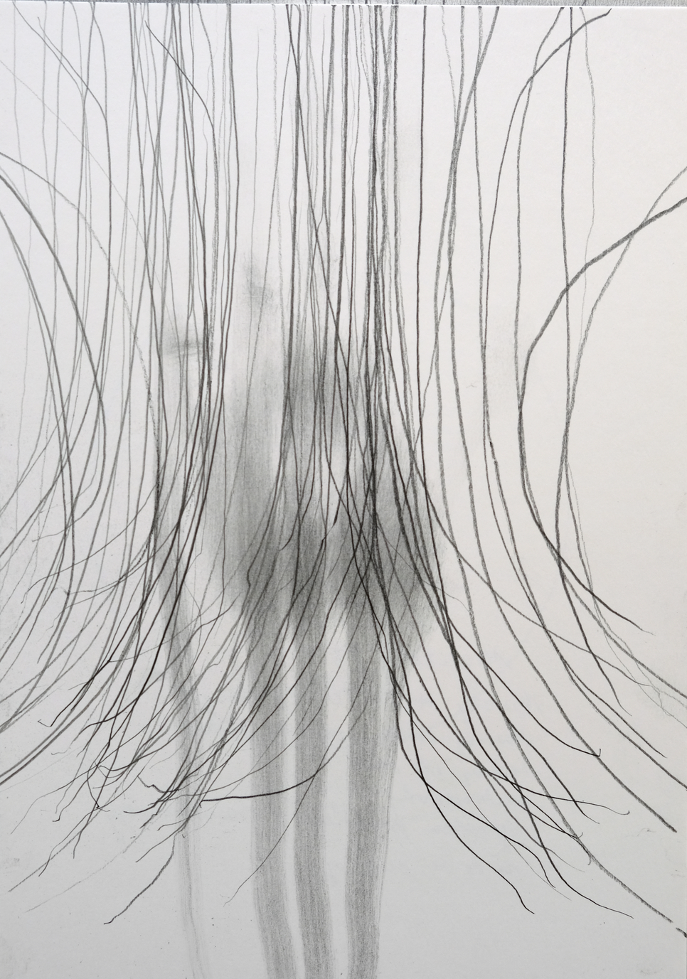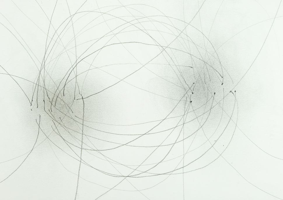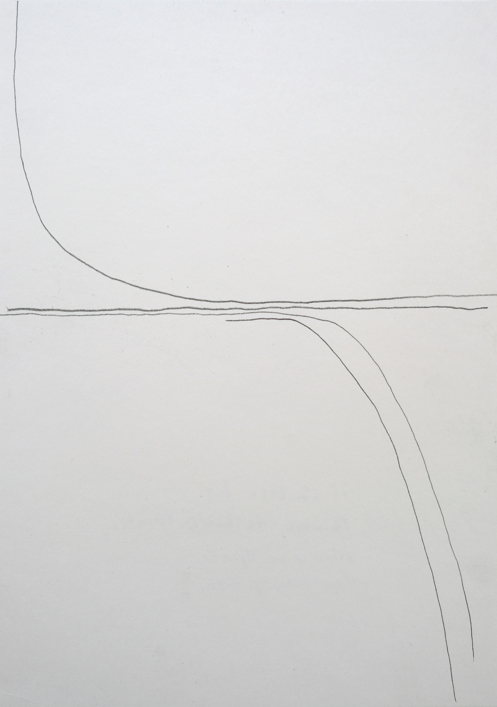 IV. Possible crystallisations of meaning. An extension of the non-verbal, expanding. No hurry. Not yet. Not yet. Inhaling, exhaling. Drawing into and drawing out. A remembered experience – there it has to develop. A decision in multiple touch, in touch with multiple surfaces. A sense of recognising. This play of momentums. Realising resonance. Sinking. Sensible boundaries, or rather changes in curvature. Constantly breathing in and out. Concurrency intervening, just appearing. Coming back to time, realising. Letting. Listening. Wondering, intermingling. This bleed of the present, opening and closing, constantly deciding. There is a call there. Drawing in and drawing out. Conditions changing, sensorially open. Edges sharpen, an indeterminate beyond. A line, a line shimmers and falls back. Airing. Trembling. Blurring. Pulsing. Wavering. Pressing. Pulsing. In touch, of surface, of line, of hand, of edge. Soft letting, leaning. Turning elsewhere. A liminal space between seeing and touching. These shifts in register, turning. Changes of angle, of perspective. A reorientation of the page. In the blankness, an opening. Invitation, for some intervention. Crystallisations of meaning, concurrency intervening. Concurrency as a way of proceeding. Trusting, trusting, following the trusting. Drop of expectation, to be surprised again. Changing, yet maintaining slowness. Sensorially open, this shifts of register and perspective. Deactivating the willing, a change in mode might feel necessary. Barely perceptible reorganisation of possibilities. A decision is revealed – yet not cut is made, to de-cision. Fluid, disappearing. The space between sense and the coming to be of sense. Landscapes, edges, curvatures of sense. To stop and observe these edges, shifting. Shifts, observing, not focusing on anything else. Expansion. Blur of form expanding. Trembling. Disorientation, reorientation, reimagining. Reconnection of the lines, breaking. Expanding. A closer connection. Reconnection. The touch of unexpected line or edge. Testing. Nearness. Wavering line, occluding. Revealing, unveiling. Touching, meeting. Departing. Edging. Edging towards. Edging away from. Moving into. Into stillness, a slowness. Disappearance. How to wait for the other? Not about. Disappearing. Seeing. Transfer the focus, the impulse. A small blank space. Extension of the non-verbal, expanding. It has to develop. Letting. Observing. A quality of in-between-ness. Letting as a different kind of decision unfolding, oscillating, not forcing. This sense of movement, this happening.
