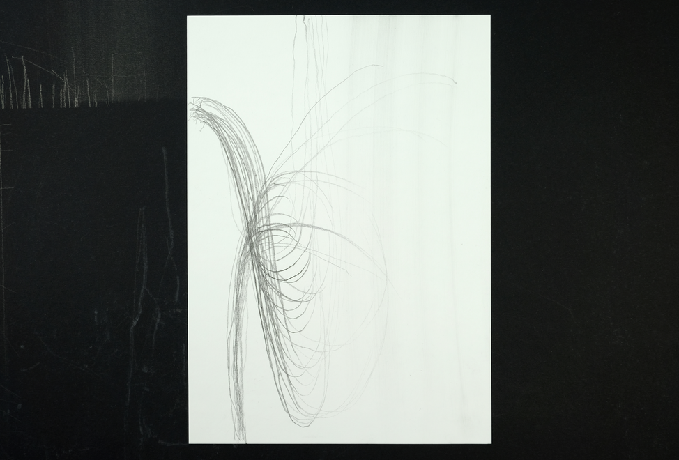 Extension. Curvature. Holding. Different impulses. Disruption. Withdrawal. Concurrency. These sensitivities to different dynamics and rhythms. It is not obvious. Sensitivity to these thresholds sometimes appearing unexpectedly. Sinking. Ex-pecting void emergent. There is also something that is evolving. Not seeing but reacting to different impulses, pulsing. Observing. Anticipating. Trembling. Feeling the infinite possibilities, possibilities appearing. Infinite possibilities of infinite possible touches. Reorientation, next impulses. There is the matter of relaxation, shimmering. This pulsing of listening and in-between-ness. Crystallisation. It opens a field of experience, of difference. To activate a space and yet leave it open. Opening. Sinking. Possibilities resonating – mutual in relation, sometimes leading and sometimes following. Possibilities actualised by the influence of other agencies, immanent difference. In-fluence. It is not consistent, and yet this lack of consistency is not a failure or a deficit. Approach and then dispersal. Communicable, this wondering, coming nearer and moving away. The slowness manifests in different ways – pulsing, intermingling, wondering. It is demanding, to activate a space and yet leave it open. These two zones unfolding – opening and closing. Co-inhabitation. Without looking, letting. Letting as a different kind of deciding. There arises a kind of impulse out of experiencing. Again and again, this invitation to move forwards, constantly breathing, bending, realising. Pulled into the shadow saying nothing. This being at the edge. Practising concurrently, co-existing. Receptivity at the edges of what might be unfolding. Something happens and it becomes a possibility. A generative field of discrete tension. Expecting, ex-pecting. Dissolving. Wavering. Delaying. A space of delaying. Letting as a different kind of decision making, delaying the actualisation of the course of events. It opens up a field of experience. To be attentive to the mode of attention. Approach and then dispersal, drawing in and drawing out. Coming nearer and moving away. This line of concurrence, this pull, listening. Moving. All this interweaving. The impulse to continue, to continue, is felt in the body. It is not a question that it works. All this interweaving, rhythms overlapping. A minimal form of isolation, wavering. Unfolding. Not seeing – to realise the sensual concurrency, agencies receiving. A space becomes, becoming middle, becoming difference, becoming drawing. This opening, again and again. Something becoming, what comes, what comes through trembling. An empty frame. Something thrown. There is a matter of relaxation – waiting, receiving reality. To begin with reorientation – the same with the voice, there is also something that is evolving. Not seeing, holding. Settling. Sinking slowness. Opening possibilities, expanding. Every practice has its own conditions of relation – to enter again, in touch in duration, a modulating resonance. Tending to touch – approximating, anticipating a necessary continuity. Mobilising the space and the time inbetween, to realise. A curvature of in-touch-ness. A deviation, tangents trembling. Infinite possibilities, actualisations of infinite possible surfaces. Something happens and it becomes a possibility. Spaces coexisting. Different impulses, realising. No me controlling – always between, an empty frame trembling, waiting.