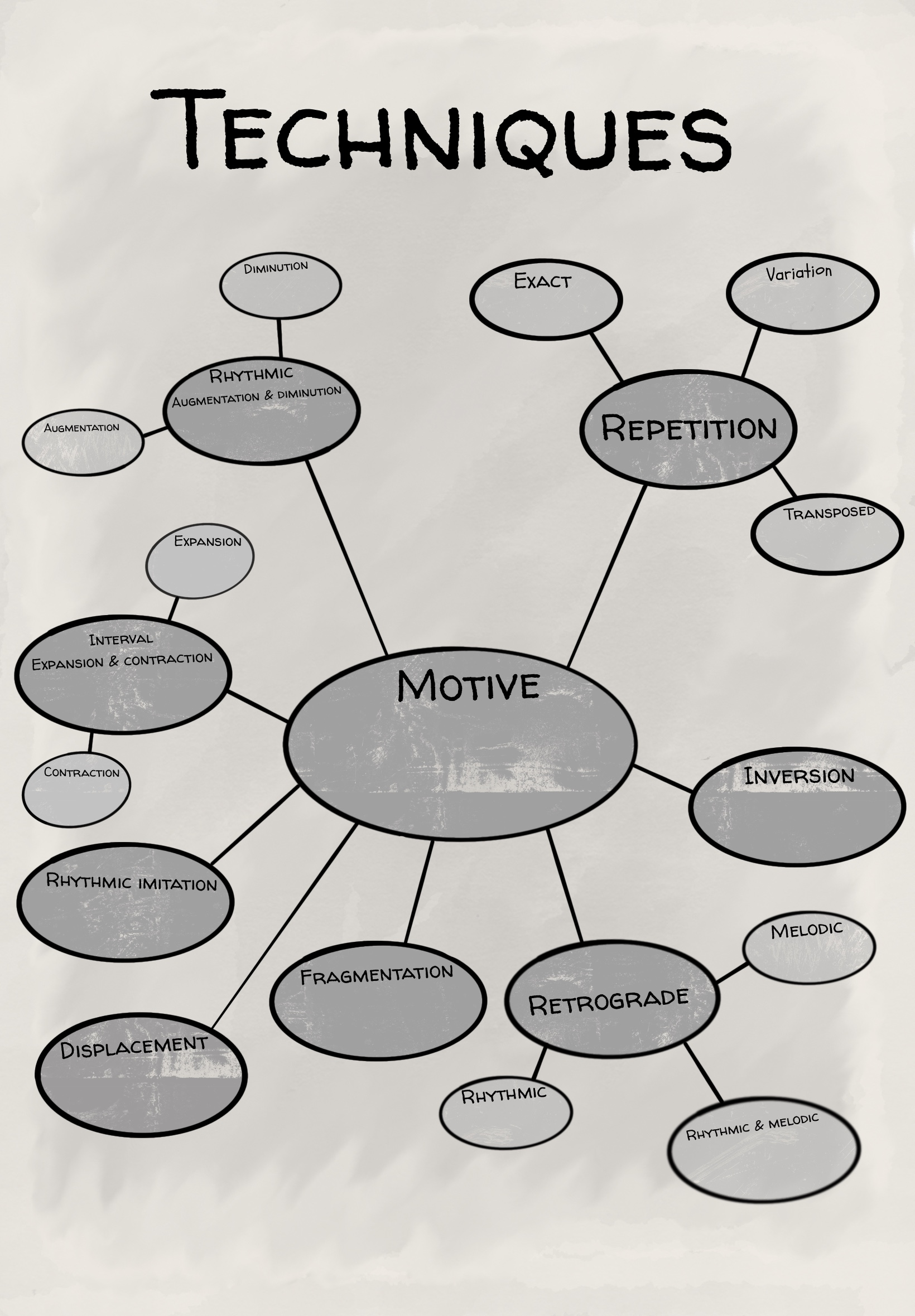 Repetition – I repeat the original motive a) Exact b) with variation, either rhythmic or melodic or both c) transposed, diatonically or to other diatonic material.