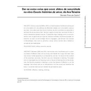 "Giving oneself as something that listens: affections of sonority in the work Listening to Love Stories, by Ana Teixeira", article by Daniele Pires de Castro