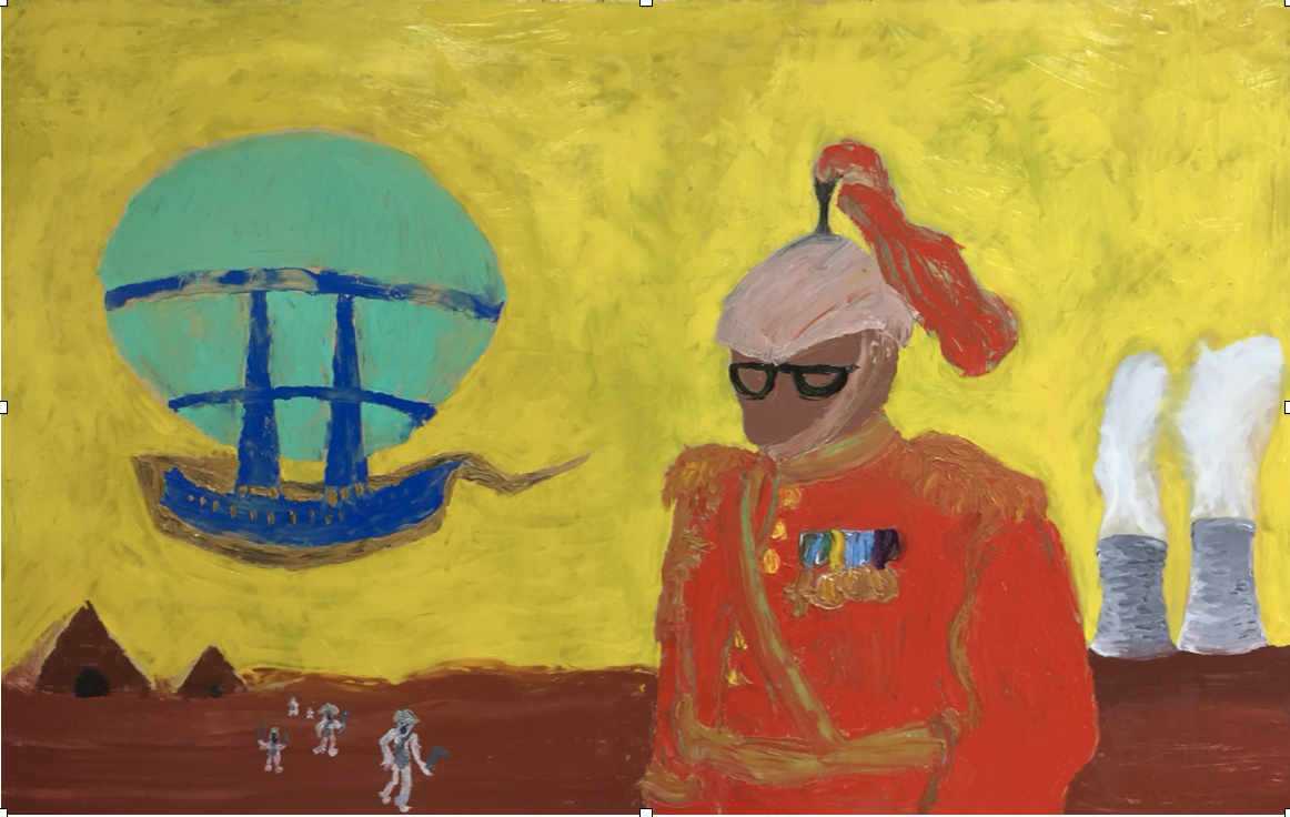 It was a longer process; after taking an MFA in 2010, where I had been making video art throughout my studies, I started painting and found a huge source of inspiration in a 70s encyclopedia, which I flipped through from start to finish. From the encyclopedia I sampled interesting photos, which I put together and painted after. So it was a kind of collages, you could say, where I painted after the images that arose. Gradually, a kind of story formed in the paintings, which I have boiled down to the story of The Holy Mushroom. I show some examples of my paintings and ceramics, later in the text, and below is the painting Captain Balteruz's last voyage, which I consider to be my first