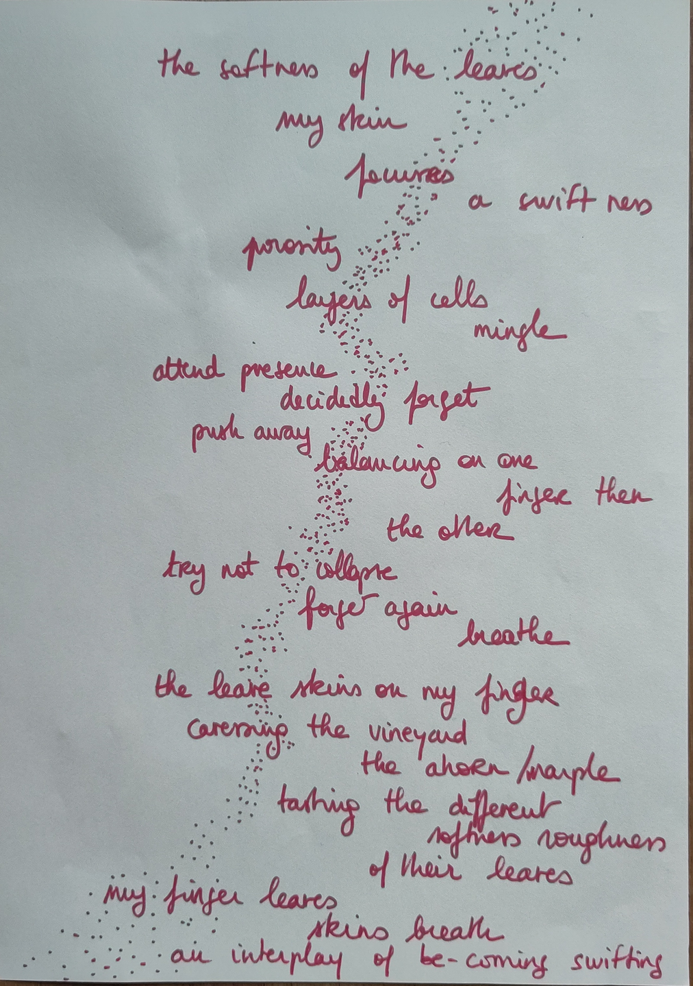 - Trace/observe the sentence(s) emerging - let them appear.