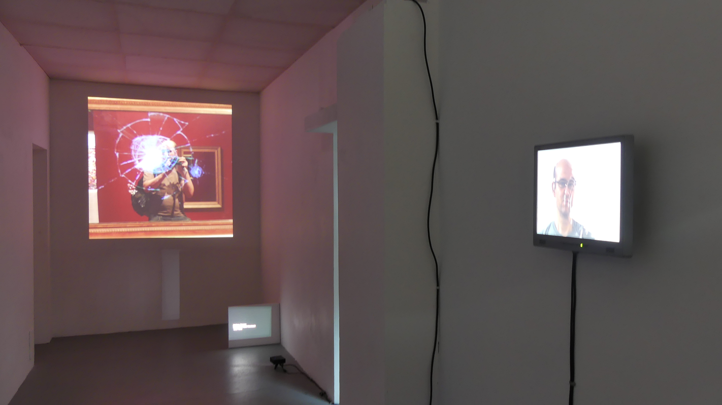 The archive of images has been configured into a three-part video that can be viewed on another page of the Research Catalogue. A slide-show projection scrolls through the self-portraits, accompanied by a screen that acts as both a text panel acknowledging the artists I appropriate and a text-work questioning authorship. The installation's soundtrack features a video of me smashing a mirror, adding another self-portrait made with a ‘humble’ mirror rather than an existing artwork. This was configured as a video installation that was first shown at General Practice, Lincoln, from 1st – 16th March 2024.