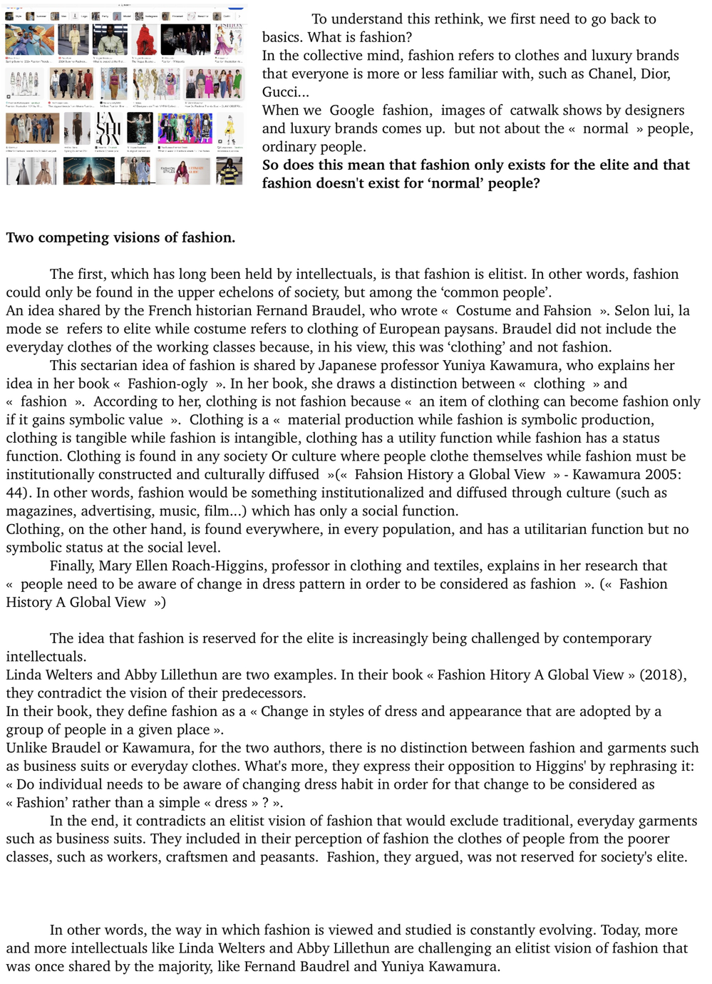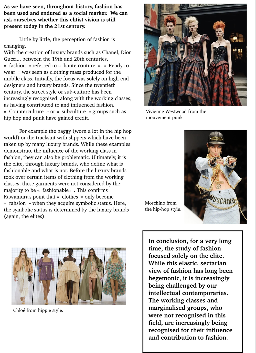 Why is fashion only studied through the representation of the elite, the richest classes, and not the lower classes?