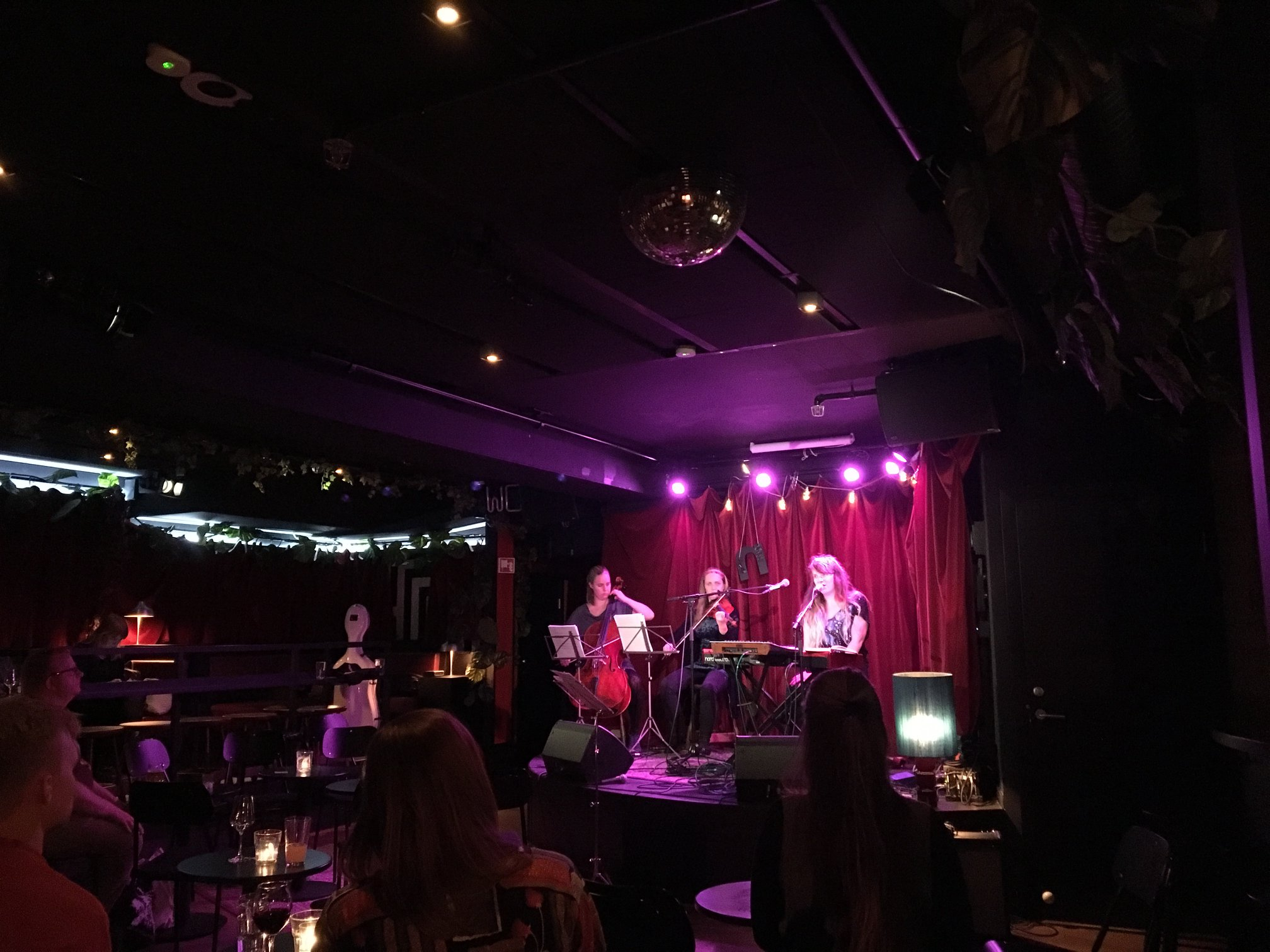 - with a band; piano, some synths, vocals, violin and cello still, but also drums and bass.