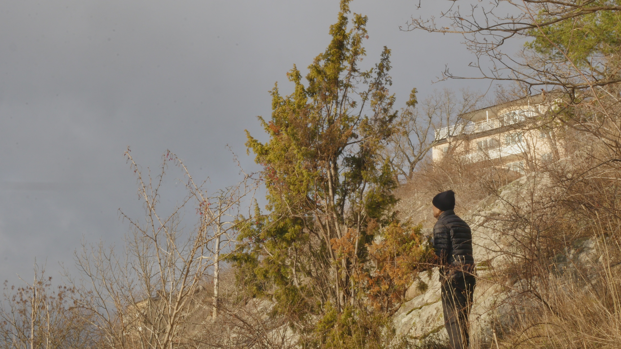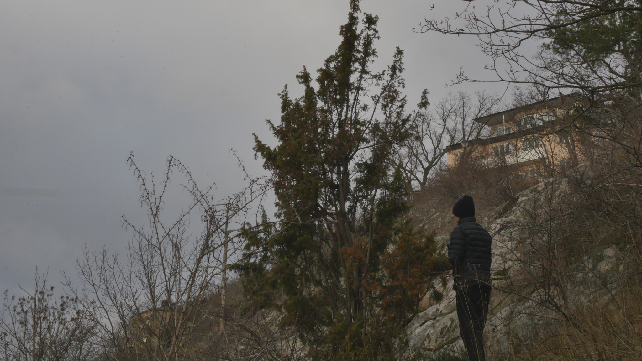 Hej på dig kära en, kära enris. Nu har all snön försvunnit så det är svårare att hitta en bra plats här bredvid dig. Med snön så har allt förskönande täcke försvunnit också och jag kan se att du omges av toalettpapper, och en massa och massa, massa cigarettfimpar. Jag kan inte förstå, det är som någon skulle ha tömt en askkopp här, eller så har de bara samlats genom åren. Nu ser jag också att på din torra gren, för det är egentligen bara en av dina grenar här som håller på och torkar, har du både gröna och blåa bär, också på de andra grenarna. Jag minns inte tidigare att jag skulle ha sett bären, det vill säga att du är ett slags fruntimmer, om man får säga så, en hon en. Ja, det är ju inte så många växter så skiljer på han- och honkönade individer, men ni enar tycks vara sådana. Det som också är väldigt påtagligt nu när klipporna är kala är att det går en stig här bredvid dig. Jag vet inte om den fortsätter längre ner men i varje fall upp hit på den här avsatsen så är det en vältrampad stig. Det brukar finnas staket här på de ställen där det är brant så att jag vet inte om det är en riktig stig. Och nu när det är bara ni barrträd som är gröna så ser man ju så tydligt allting. Få se hur det blir sen när det blir löv. Du har också här rosenbuskar och allt möjligt som jag inte vet vad det är här alldeles intill på båda sidor om dig. - Det som också är väldigt påtagligt nu är att Essingeleden hörs så starkt. Jag tänkte inte att det skulle höras så här mycket för vi är ju en bit därifrån men visst hörs bruset tydligt. Men vinden kommer inte hit så illa, du skyddar mig för vinden en aning för den kommer från sydväst. Det som jag tänkte då eller planerade att jag skulle prata med dig om är dels det som finns här, det som du kan uppleva, och sen också kanske det som inte finns här, som jag kan uppleva på något sätt som en frånvaro på gott och ont. Och just idag så är det väldigt påtagligt med frånvaron av snö. För vi är nu, vi har den 5 februari så nu just borde det vara en massa snö eller i normalfall så är det här den tiden på året då det är mest snö. Och ofta när ljuset håller på att återvända så gnistrar och glimmar och glittrar snön verkligen i solljuset. Det var en del snö som kom ner i går eller i förrgår men den har försvunnit igen för det är plusgrader så det är klart att den inte finns kvar. Konstiga dagar. Det ska bli spännande att se hur pass torrt det blir när det inte finns något snötäcke sedan som skall smälta. Men nu är det förstås gyttjigt och lerigt och fuktigt. En annan sak som väldigt tydligt inte är här för mig men som du ju inte kan besväras av är de nyheter som just har spridit sig över Stockholm och också hela Sverige att det har varit en gräslig skolskjutning i Örebro. Och det har ju brukat vara så att det, skolskjutningarna som jag vet om de har funnits i Finland för några år sedan. Och Sverige har då haft sitt gängvåld och alla sprängningarna nu för tiden och så vidare. Men det här var då en jättelik skolskjutning på en vuxenskola. Och han som sköt var 35 år och synbarligen sköt sig själv också. Det är alltid kusligt med de här våldsdåden som är liksom ensamma olyckliga gärningsmän, för man tycker att skulle det inte ha funnits någon chans att liksom hitta den där olyckliga människan innan det bar så illa. Man vill ju så ogärna blanda sig med andra människors problem och i samhället nuförtiden så är vi ju mindre och mindre på något sätt beroende av familjen. Fast jag just personligen är väldigt beroende av familjen eftersom jag inte har en egen familj, alltså inte en make och inga barn. Du växer här på sätt och vis ganska ensam på klippan. Det är inte någon släkting nära dig men jag kan se en, ska vi säga kanske en 50 m härifrån lite högre upp. Där finns en en som växer och det finns några till längre fram på Fredhällsklippan. Men inte är det ju något samfund ni har här om jag tänker på andra ställen där enar ofta växer liksom i stora klungor. Men i och för sig så finns det kanske inte näring för så många här på den här lilla avsatsen. Och det där som jag sa om stigen så det tycks faktiskt vara en stig, för nu går det en person där nere på stigen. Det ska bli spännande att se om hon hittar fram eller om hon helt enkelt vänder. Ja, det tycks hon göra. Men det där alltså som en metod att fundera över vad som finns här och vad som inte finns här är ju ganska bra, för att det finns så mycket som inte finns här, och som man kan glädja sig åt att inte finns här. Inte bara skolskjutningen utan krig som pågår i Ukraina och Gaza remsan och på Västbanken och i Mellanöstern över huvud taget och på många andra ställen också. Och nu smattrar någon slags maskin som nästan låter som ett vapen, men det lugnar mig att veta att det är verkligen, det är byggarbete. Och nu ser jag kvinnan som gick längs med stigen, hon fortsätter faktiskt framåt men nu kryper hon på alla fyra lite längre fram för att komma fram till stigen på andra sidan klippan. Tuff nog, jag skulle kanske inte försöka mig på det. Men just nu är det lyckligtvis inte så halt för att det är inte är fruset. Andra saker som inte finns här just nu är förstås småkryp och mygg och sådant som kunde störa dig. Fast jag tror nog att det som har stört dig mest här är faktiskt de människorna som har kommit och slängt allt det här giftet vid dina rötter. Man får ju hoppas att det är inte är så mycket nikotin kvar utan att det faktiskt är bara de där filtren som sedan inte kommer att förmultna på hundratals år. Men nikotin är ett ganska gräsligt gift också för växter. Jag undrar vad det beror på att din ena gren här har börjat gulna, om den har skadats på något sätt eller om det är något annat som