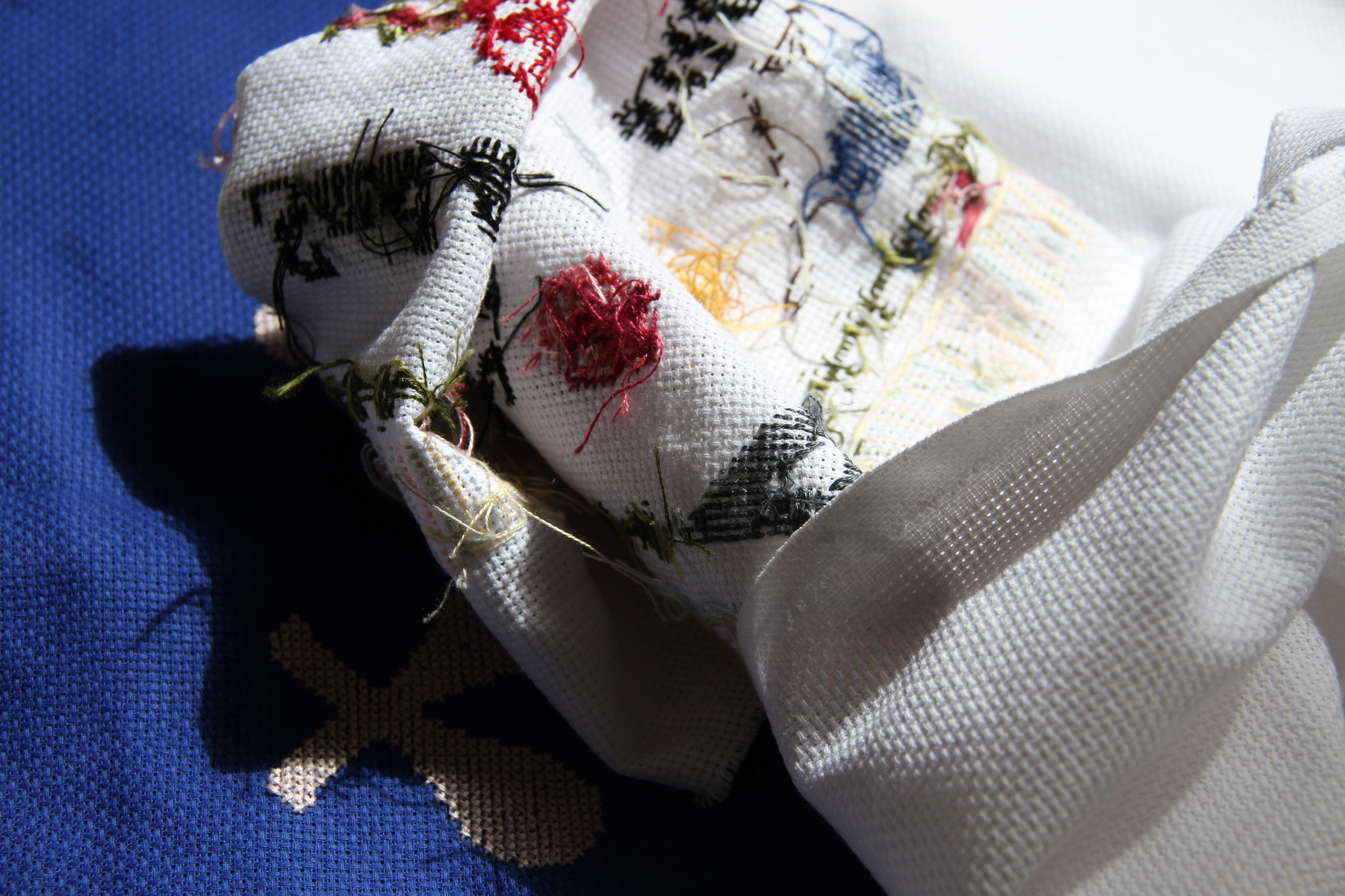 The X’s in cross-stitch are used to create a system of relationships based on the rituality defined in the previous sections of this exposition. On the face of it, banal experiences such as braiding hair are interwoven in the representation of particular forms already seen in Un Atletismo Afectivo and Trenza. Here, however, the originally feminine as a way of seeing the world is added to the domestic and partial elements.