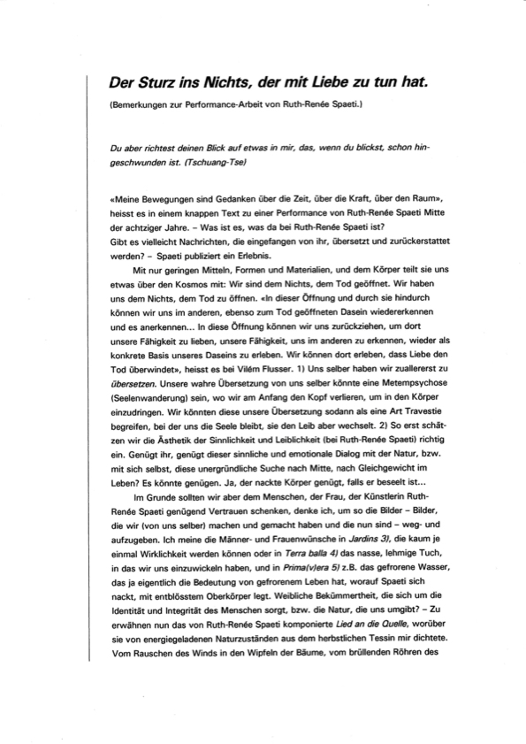 Wir sind auf (Innerschweizer) Spurensuche und beleuchten die Performanceszene der letzten 40 Jahre: Eine Karte – eine «Performance Archäologie» ist am Entstehen. Wer hat wann, wo, mit wem performt? Wir interviewen Veranstalter_innen und Performer_innen und recherchieren im Stadtarchiv Luzern. ...Wir sind eine (ergänzende) online Plattform: Snapshots berichtet über laufende Veranstaltungen; im Archiv wird vergangenes dokumentiert. ...Wir machen Innerschweizer Akteur_innen sichtbar.