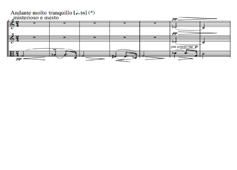 The piece starts at the sunset in Granada, it indicates “misterioso”. The sonority is very similar with the use of brief crescendos and diminuendos as well as a low register of all the instruments.