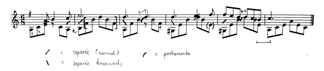 1 Already Domenico Corri describes this to be the main point of the portamento (The Singer's Preceptor, London ca. 1810, p. 3f.): "Portamento di voce is the perfection of vocal music; it consists in the swell and dying of the voice, the sliding and blending one note into another with delicacy and expression". For further discussion see Jesper Bøje Christensen, "Was uns kein Notentext hätte erzählen können: Zur musikalischen Bedeutung und Aussagekraft historischer Tondukumente", in: Claudio Bacciagaluppi et al. (edd), Zwischen schöpferischer Individualität und künstlerischer Selbstverleugnung: zur musikalischen Aufführungspraxis im 19. Jahrhundert. Vol. 2. Edition Argus, 2009. p. 146.
