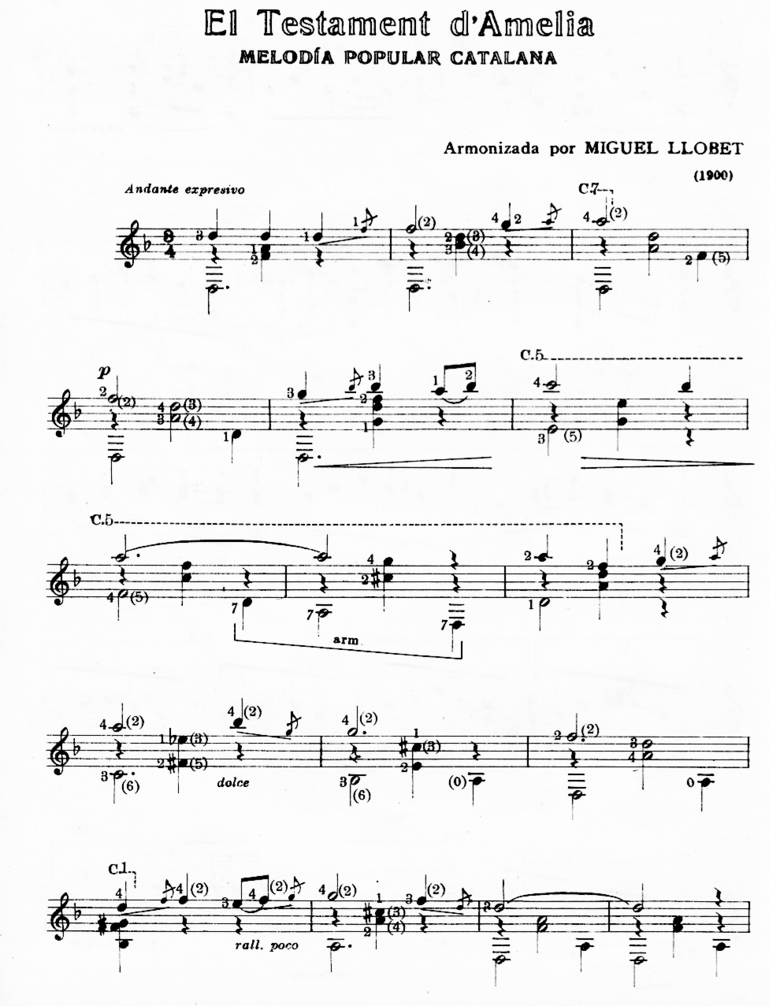 A picture of Miguel Llobet clearly showing his right hand position. This position was preferred by Francesco Tarréga, Llobet's teacher. Andrés Segovia also used it.