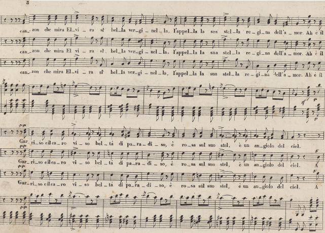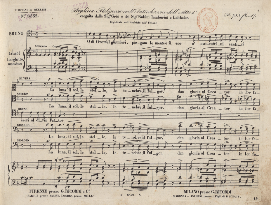 It was published around 1831[1] in Madrid by Carrafa and in Paris by Mr. Pacini. and dedicated to María Francisca del Castillo, Countess of O. Reilly. The Fantasía elegante presents several motifs or excerpts of Bellini[2]´s Opera, I Puritani[3], as sections within the multisectional structure of this work.