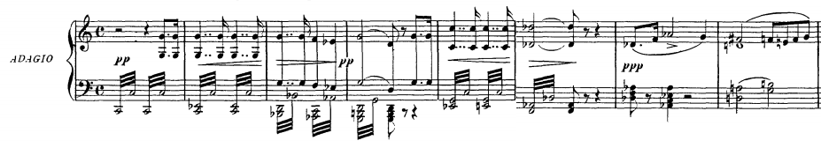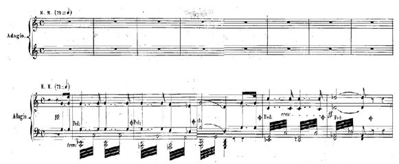 The alternation of both constitutes the organization of the passage that, after a sudden modulation to B minor, is interrupted by a brief Adagio.