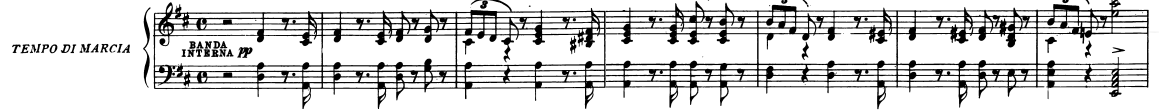 The indication Tempo di Marcia that seems to be Albéniz´s inspiration for his section of the fantasy is presented by Verdi in the Tutti for the introductory choir at the beginning of the third part of the opera. However, the material is written in D major but it will be in the Marziale of the “Preludio, Scena ed aria” from the fourth act of the opera, when the passage is in the key of E-flat major, the same one that Albéniz will use in the fifth part of his Fantasia para piano a cuatro manos sobre motivos escogidos de Nabucco, op. 36.