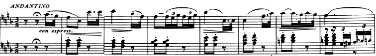 The fifth part of this multisectional piece, the Andante in E major, starts with Albéniz suggestions con espressione and molto legato, which give us quite a clue of the character of this fragment.