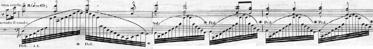 The composer conducts us through his ideal of expression for the passage: ternerezza, amabile, cantabile, delicate; turning at the end into something slightly different (languid, mesto). The writing serves the musical idea with deep bass, accompaniments that help the singing line of the right hand and that certainly requires pedal to make the idea comprehensive.