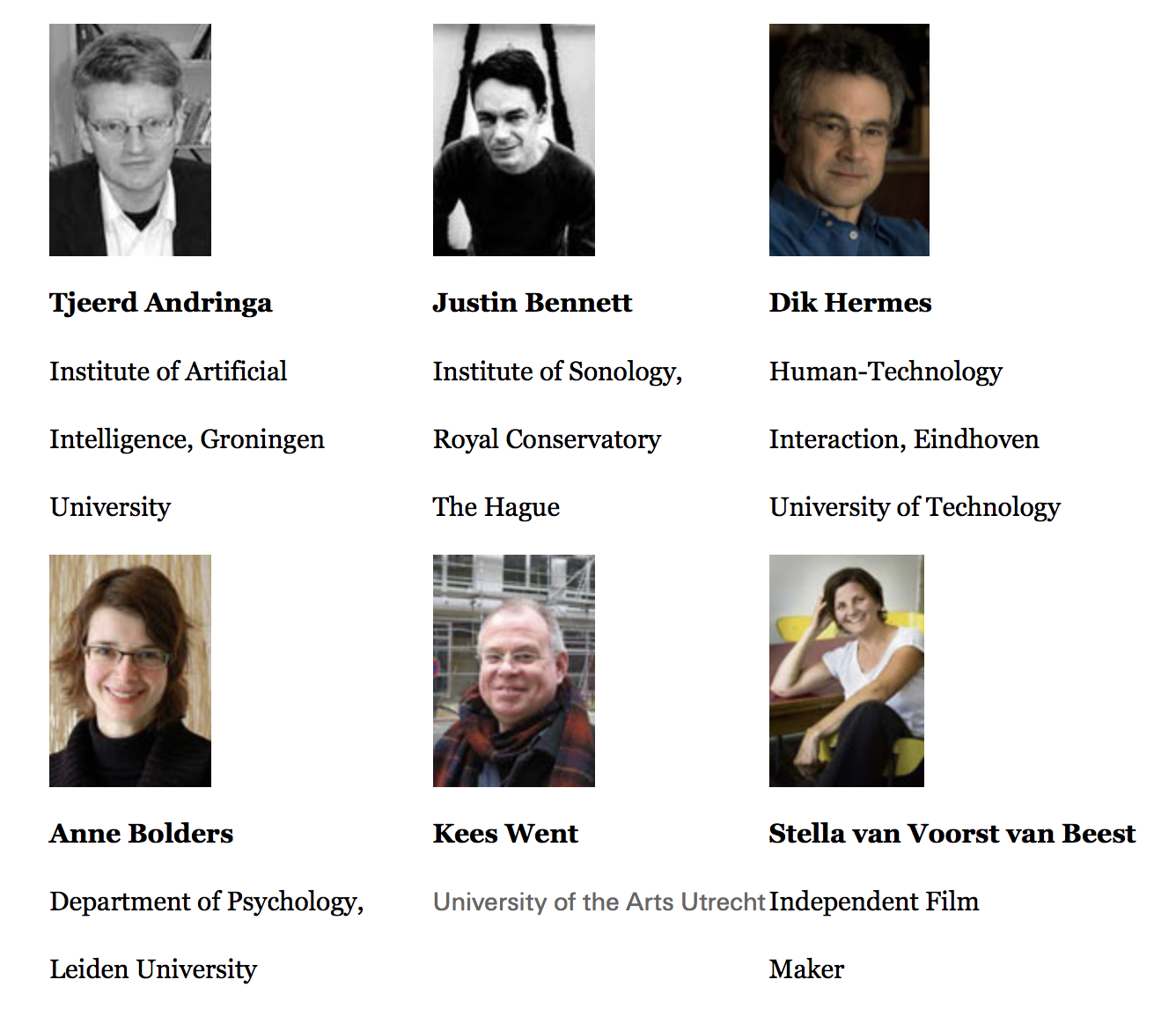 So, what happened when these experts, somehow representing all those different approaches, theories, and discourses met on December 7, 2012 in Scheltema, Leiden, despite the weather conditions? Did it lead to a Babel-like confusion? To mutual incomprehension and a lack of interest? Or to fruitful discussions, to shattering prejudices and ignorance, to new insights, motivations, and topics? Of course the editors were hoping that institutional, scholarly and theoretical boundaries could be transgressed, that new collaborations and networks could occur; they were hoping for a biologist who could teach a sound artist while learning from an architect, and for a sound designer who could teach a philosopher while learning from a cognitive scientist. And vice versa of course.