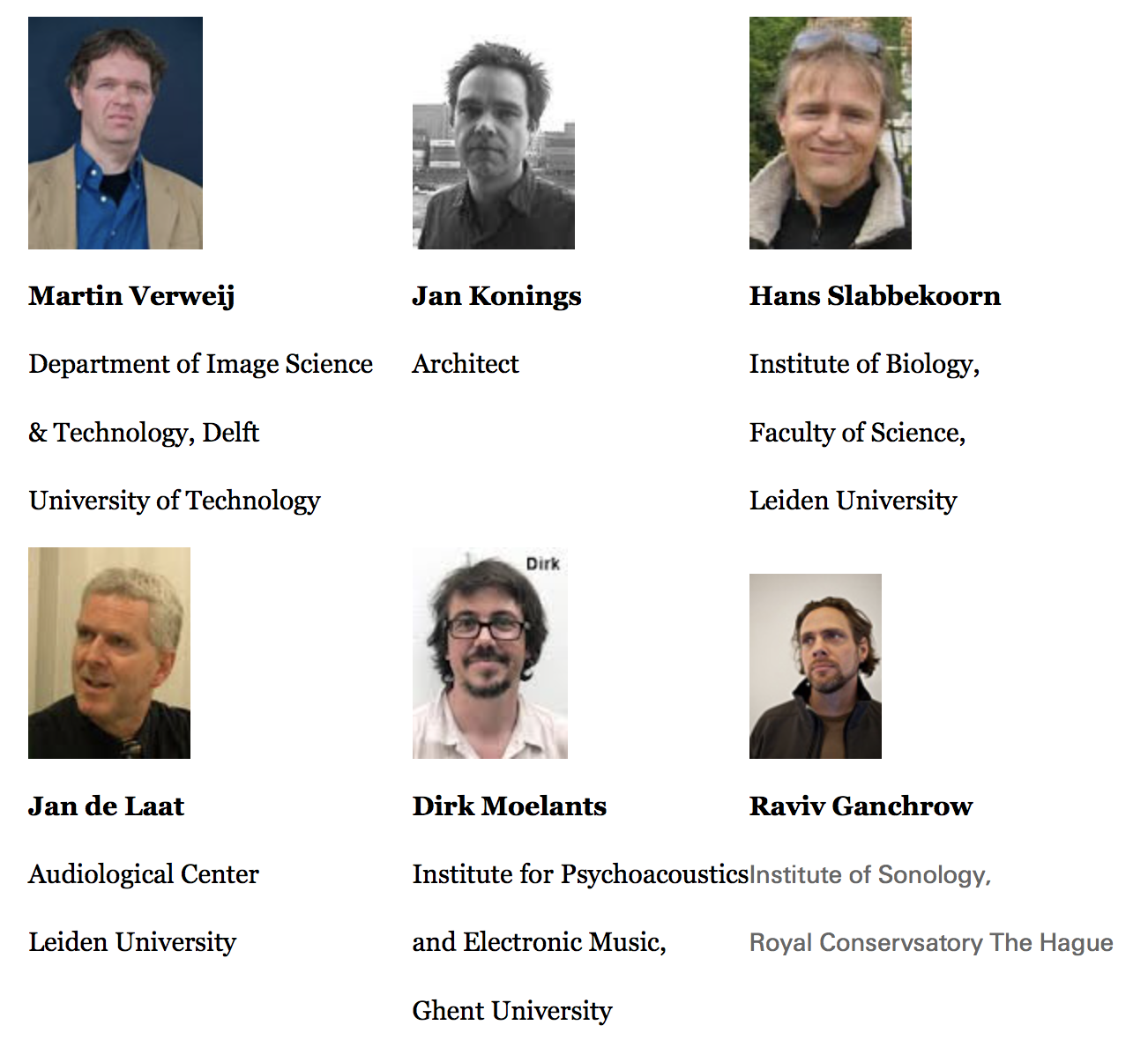 The expert meeting Auditory Culture has been supported financially by the Koninklijke Vereniging voor Nederlandse Muziekgeschiedenis (Royal Society for Dutch Music History), the Leids Universiteits Fonds (Leiden University Fund), and the Academie der Kunsten (Academy of Creative and Performing Arts).