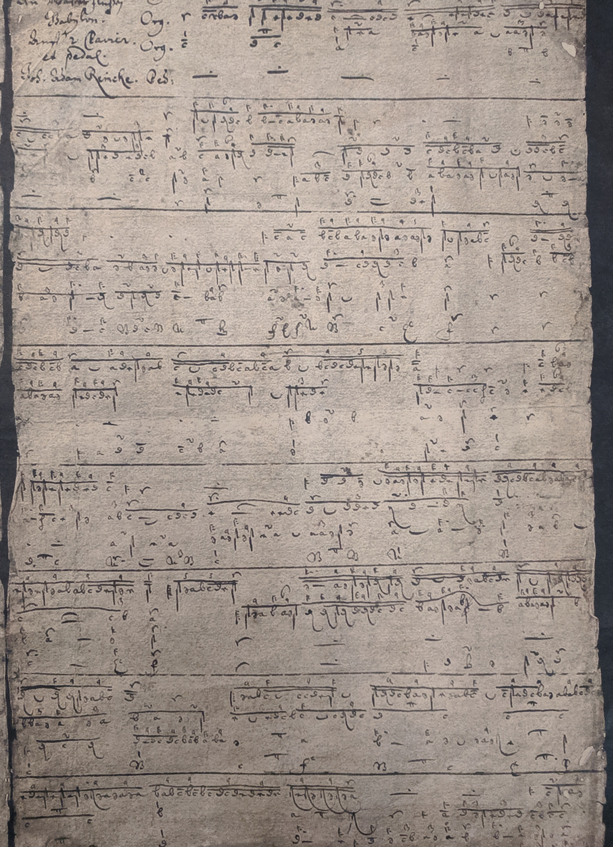 A more recent discovery of Bach tablature writing is autograph manuscripts of a 15-year-old Bach found in the archive of the Duchess Anna Amalia Library in Weimar in August 2006.They contain Bach’s keyboard arrangement of pieces by Dietrich Buxtehude and Johann Adam Reincken (1643-1722). Bach's signature on the document is clearly visible, and at the time of discovery, it was the new earliest source of Bach’s writing, for it clearly displayed his genius and talent at a much younger age than previously assumed.8 It is clear that his training in the classical repertoire and notation preceding his time served as a firm basis for his later compositions.