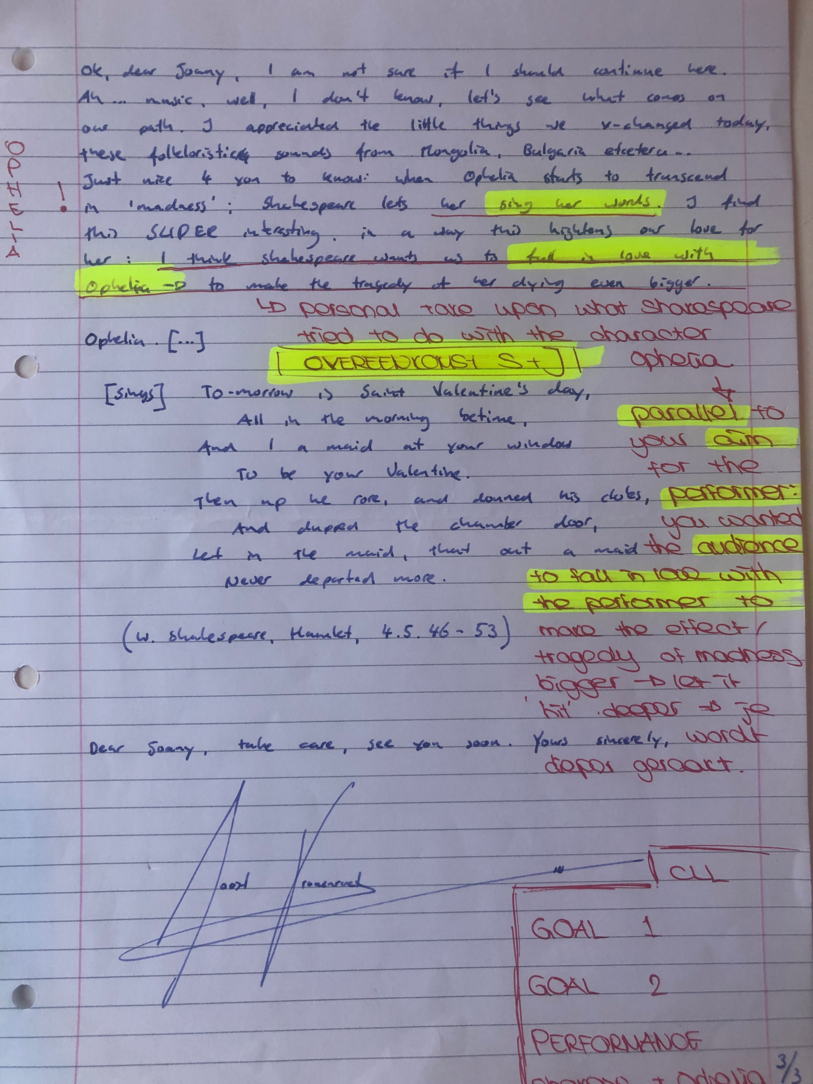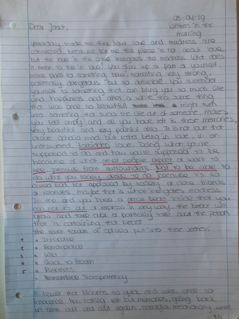 (Hamlet and Ophelia correspandance)