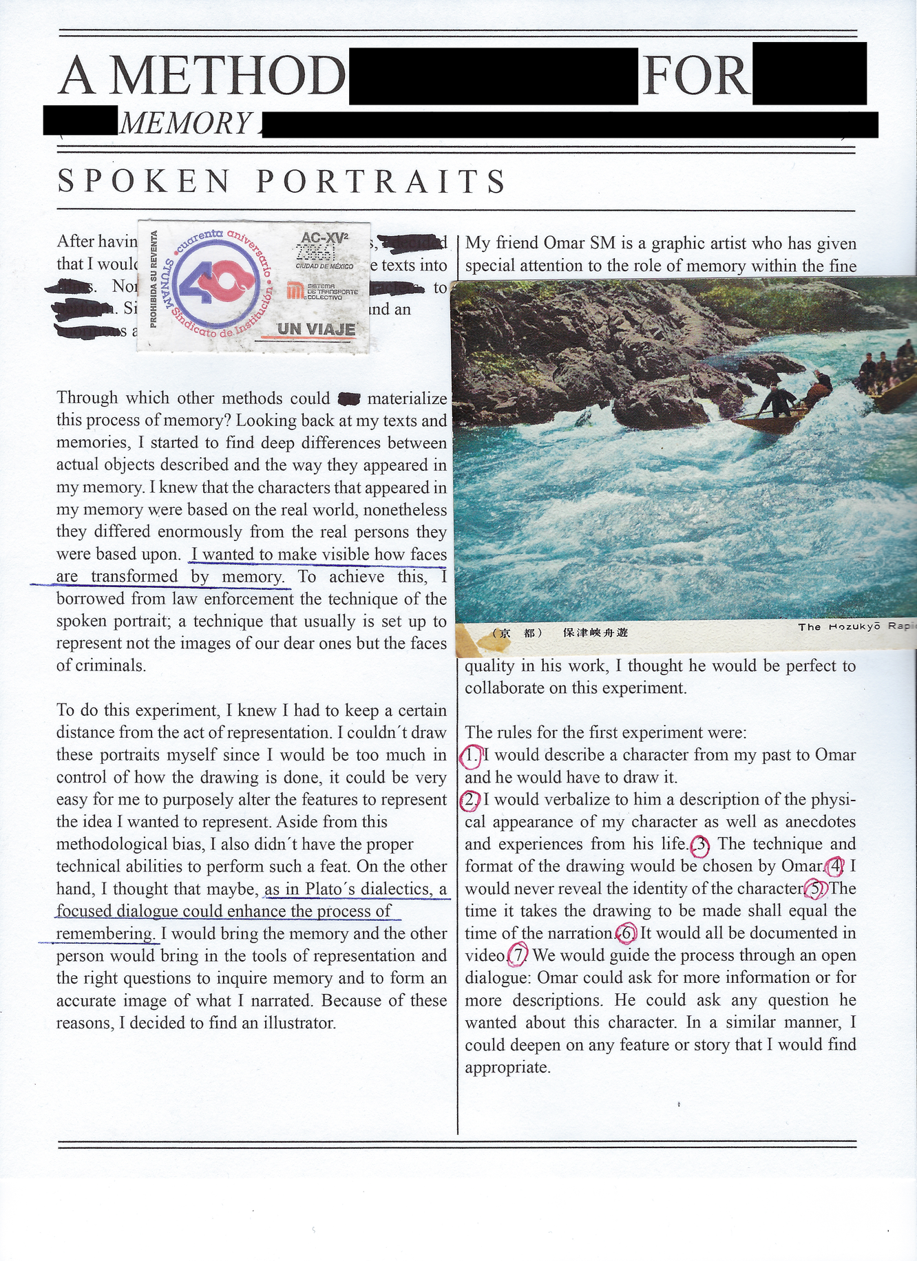 1. I would describe a character from my past to Omar and he would have to draw it.