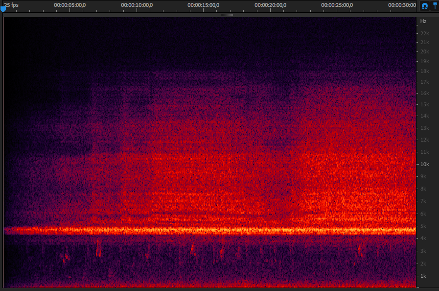 So this is all not very scientific, it could be approached that way but I didn’t. I took some pictures of the spectrum of the clips and how it changed over time. Most interesting for me was that there seemed to be a threshold where the compression changed the clip dramatically and after which there was not much of a change anymore, or if, it seemed to rise from the codec interpreting and intensifying itself.
