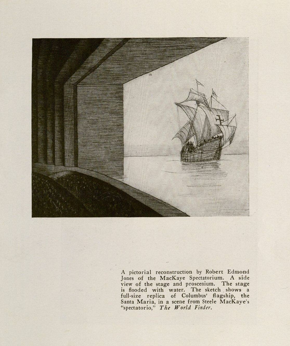 - Spectatorium reconstruction, drawing by Robert Edmond Jones (Harvard's University, Houghton's Library collections - Internet ressource)