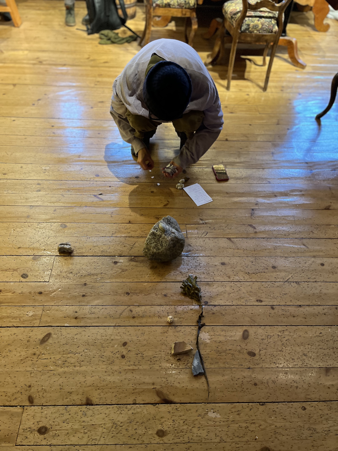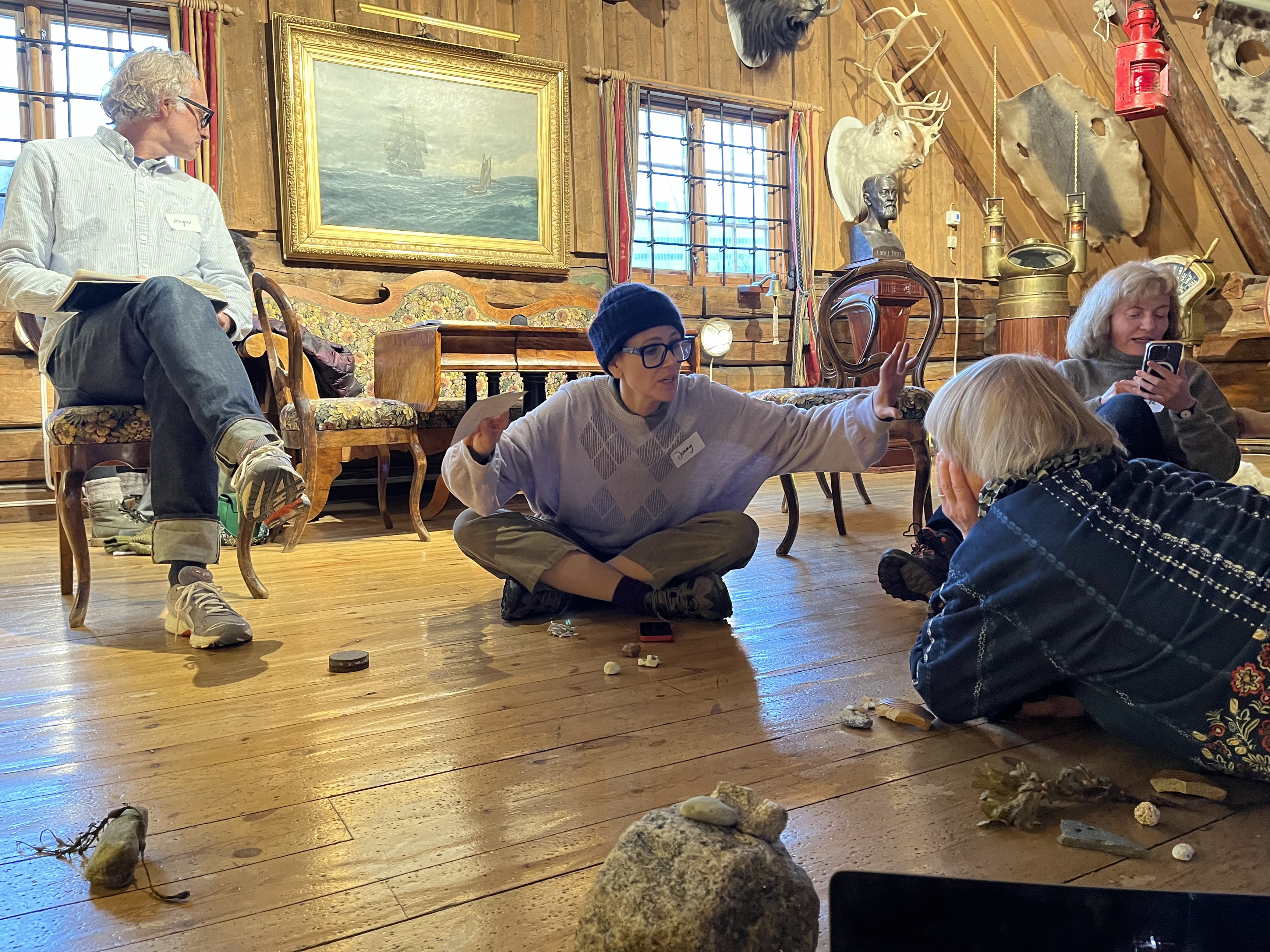 Inspired by the Samı artist Britta Marakatta-Labba, and her tapestry ‘Historıa’ which is owned by the local Arctic University i Tromsø, participants were invited to partake in a series of listening interventions exploring forgotten principles and rituals, facilitated by Jenny Sunesson, inside and outside of the Polar Museum.