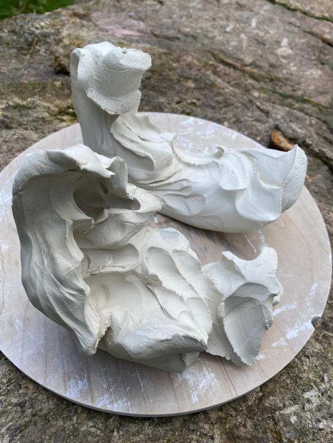 As with everything around us, on a particle level, clay physically changes moment by moment. With clay, however, this process becomes visible to us. A clay pebble in the palm of your hand will begin to dry and stick to your skin and within moments we feel the change in our hands. Before firing the clay, we must allow the material to dry slowly, so it doesn’t crack as the once fluid particles become rigid. To work with clay requires a certain level of being with the material.