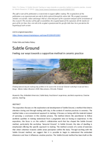 For the basis of our work, we introduce two workshops where we began to develop a direction within a creative practice that uses clay work as a means to focus on the experiential aspects of making. The outcomes of the workshops are developed further in this exposition to form a method that draws upon the experiential aspects of making and is tightly connected to the creative practice. We also discuss the shared research that was used to formulate the structure and aims for the ‘Sensorial Ground’ workshop. Our work is a continuous journey exploring the clay’s possibilities, and in this context, we discuss the clay and its qualities that we find relevant and enable the practice that is sought through the Subtle Ground method.