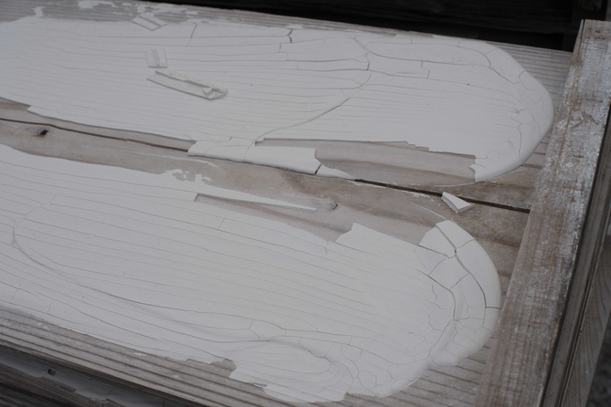 (Gofun 胡粉 is an opaque white pigment made from pulverized high quality oyster shells which were left to dry ten to twenty years before the transformation process.)