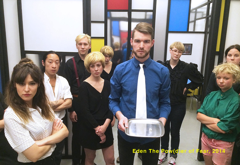 In short, the live performance Eden, The Pow(d)er of Fear took place in a labyrinth-like construct at Lilith performance studio, Malmö, Sweden in early summer 2014. It became like a social experiment, in which 17 local actor/participants repeated strange games (6 games altogether) governed by a throw of dice and dictated by the game master. Viewers were let in to wander freely in the construct for three hours and it was hard for them to distinguish the reality from the fiction and at first, the actors from the viewers. This performance event was a reworking of the French Nouveau Roman writer and film director Alain Robbe-Grillet's film L'Eden et après (from 1970), using alternate takes and re-editing in the space.