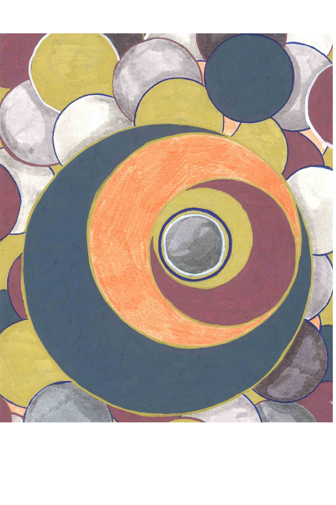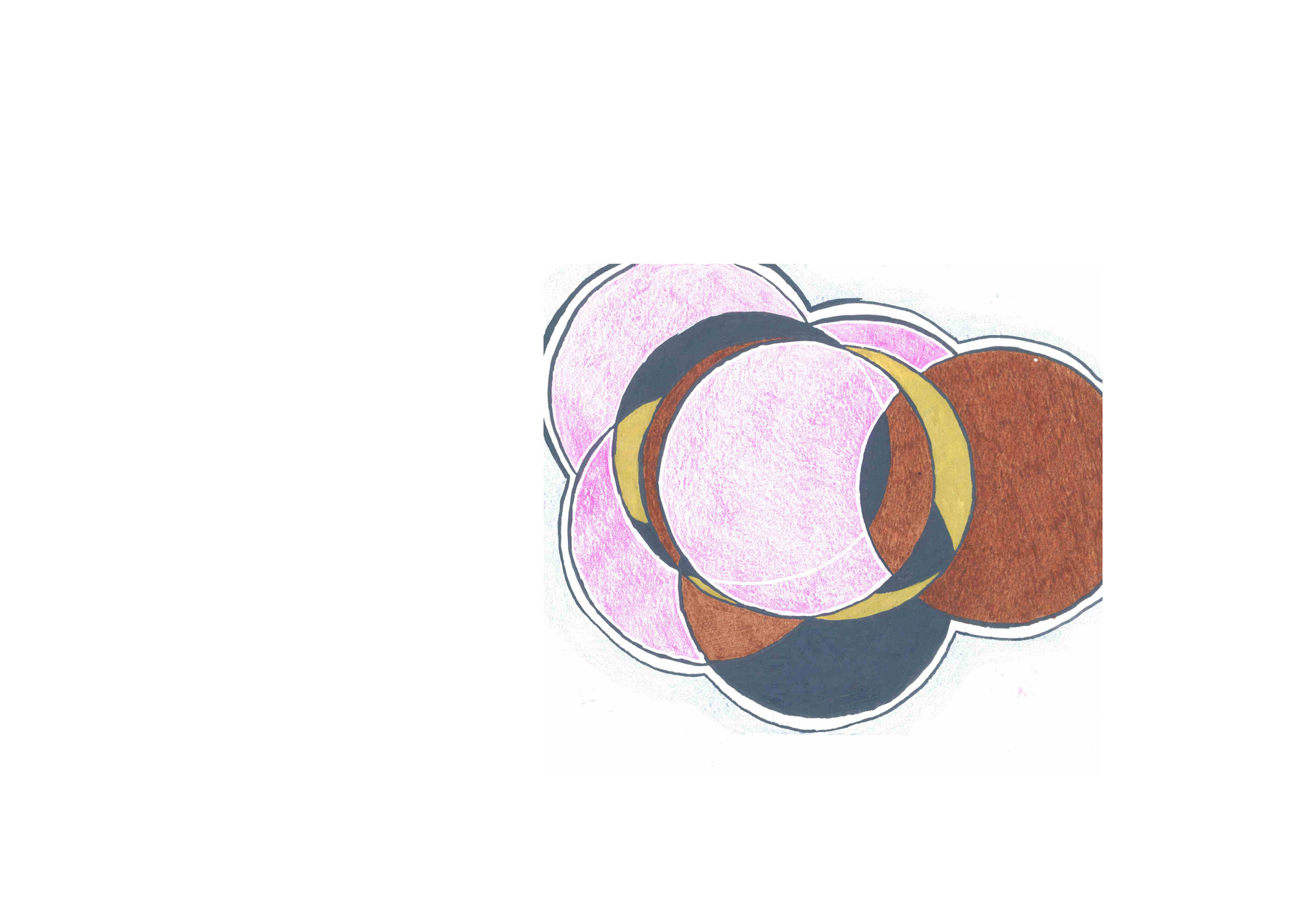 Below,the boundary of the space within which the experience is notated, is represented by the black line around the notations. The colours and shapes are the elements within the experience, influencing, overlapping and relating with eachother. The idea is that these are captured moments in time.