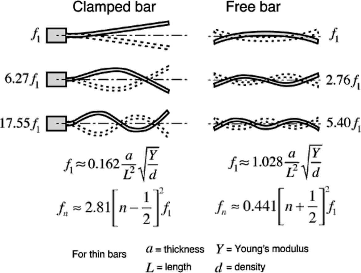 Figure 3. The elastic property involved in the vibration of bars is usually stated in terms of Young's Modulus. Bar Vibrational Modes