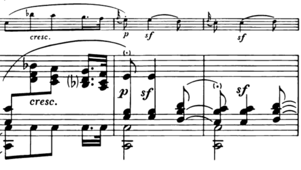 The return of this figure in bar 12-13 brings a new element into light