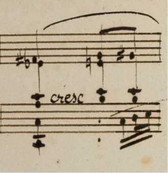 Beethoven seems to have made a very serious point about this in his famous letter to Holz the second violinist of the Schuppanzigh quartet about the op.132 quartet in 1825 (Beethoven 2010: 1379), concerning the use of staccato lines in his music. The correction Beethoven made here should be respected, so as to avoid putting an accent on the following very low chord, and give the sense of a resolution to the preceding crescendo. On the other hand, the violin does not really ‘arrive’ to the A : a new phrase begins there, emphasized with an expressive, drawn (and not written out) crescendo swell (we have one hypermetric unit finishing and another beginning : this is classical ambiguity at its finest and simplest : what does a resolution mean ?