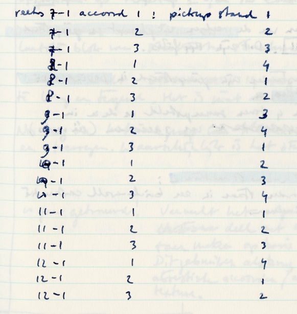 Figure 29: series, chords and pickup selector positions (the numbers 1 to 4 correspond to pickup selector positions 2 to 5). Each chord has 4 tones, 3 chords make one complete twelve-tone series.
