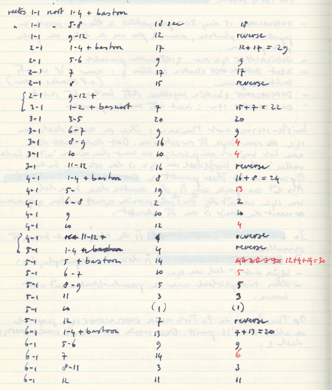A total of twelve synchronisations were made (one for each of the twelve-tone tone series 1-1 to 12-1). Synchronisations 1 to 4 were used in section 1, synchronisations 7 to 9 in section 8.