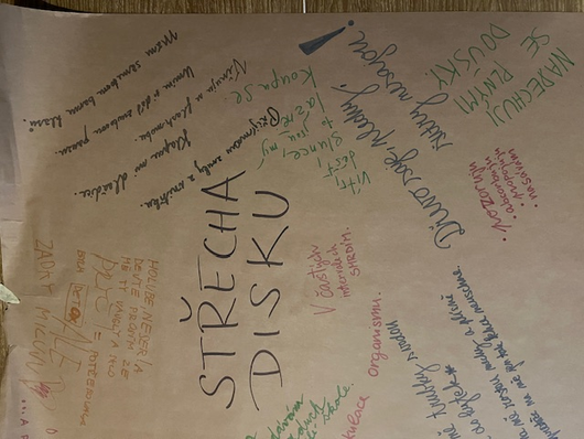 This exhibition presents the context, process, and conclusions of the artistic research project Imagination as a Tool for Change in Shared Space, carried out at DAMU. At the heart of the research is the question: How can we give the body a voice? In other words, how can we invite bodily perception and imagination into the process of decision-making and exploration, while at the same time perceiving these qualities as fully-fledged mediators of information? The backbone of the research consists of a pair of workshops designed to guide students through the exploration and reflection on the theme of the chill zone at DAMU. A series of exercises aimed to awaken their somatic and sensory perception, followed by an exploration of spaces designated for rest, and finally imaginative exercises with the aim of proposing possible changes or forms for the spaces. The exhibition presents the individual layers of the project: 1) In the contextual layer, we acquaint readers with our personal starting points (chapter: Medallions), with the theoretical and practical-experiential foundations on which we consciously build (chapter: Introduction), and with methodological procedures (chapter: Methodology). 2) At the center is the documentary layer, which describes the structure of the workshops, the creative outputs of the participants, and a chronicle mapping the transformation of the research team's thinking, documenting the lively dialogue between the discourses of transformative pedagogy and embodied learning in acting and authorship. 3) The layer of findings and conclusions identifies two fundamental qualities: (a) the concept of "sensitized researchers", in which bodily and sensory perception provides a full report on the surrounding world, and (b) the situation of being in the imagery, in which working with the imagination offers possible proposals for change. In conclusion, we look back at the reasons for the changes in the original research questions and consider further possible directions for research. Tato expozice prezentuje kontext, proces a závěry uměleckého výzkumu Imaginace jako nástroj změny ve sdíleném prostoru realizovaného na DAMU. V centru výzkumu stojí otázka: Jak dát tělu hlas? Neboli jak do procesu rozhodování a zkoumání přizvat tělesné vnímaní a imaginaci a jak zároveň tyto kvality vnímat jako plnohodnotné zprostředkovatele informací. Páteř výzkumu tvoří dvojice workshopů, které byly navrženy tak, aby studující provedly zkoumáním a promýšlením tématu chill-zóny na DAMU. Série cvičení směřovala k probuzení jejich tělesné a smyslové vnímavosti, následně ke zkoumání prostor určených pro odpočinek a v závěru k imaginativním cvičením s cílem navrhnout možné změny či podobu prostor. Expozice představuje jednotlivé vrstvy projektu: 1) V kontextová vrstvě seznamujeme čtenáře s našimi osobními výchozími pozicemi (kap. Medailonky), s teoretickými a prakticko-zkušenostními východisky, na které vědomě navazujeme (kap. Úvod), a s metodologickými postupy (kap. Metodologie). 2) V centru stojí dokumentární vrstva přibližující strukturu workshopů, kreativní výstupy účastnictva a kroniku mapující proměnu myšlení výzkumného týmu, dokládající živý dialog mezi diskurzy transformativní pedagogiky a vtěleného učení k herectví a autorství. 3) Vrstva zjištění a závěrů identifikuje dvě zásadní kvality: (a) koncept „zcitlivělé výzkumnictvo“, kdy tělesné a smyslové vnímání přináší plnohodnotnou zprávu o okolním světě, a (b) situaci bytí v představě, kdy práce s imaginací nabízí možné návrhy ke změně. V závěru se ohlížíme za důvody změn původních výzkumných otázek a promýšlíme další možné směřování výzkumu.
