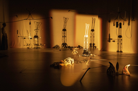 My research initially took the form of a fourfold consisting of spatial audio, electronic instrumentation, improvisation and philosophy and I attempted to find surrogate connections between these areas distinct from any hegemonic methodologies borrowed from the humanities. In turn this gave my practice the emancipation to spawn its own relations, to accelerate and create its own images of thought whilst at the same time exponentially fabricate a range of monikers and fictional selves that could produce without the expectations of the other. I have inhabited unknown crevices and intervals between all four nodes and throughout this research the demarcations between each terrain seemed less defined. I have established a topology of knowledge that hinges on folds, tangles, knots and slopes rather than a geometry of logical deductions. The intermingling of materiality, thought, and language informs the work both structurally and stylistically.