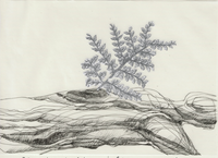 Several works and results of the processes active in Cogito ergo Pisum have been installed in a number of exhibitions, many of which are ongoing or infinite by nature; presented in open archival or horizontal hybrid structures with documents, negative cyanotype photograms, wall drawings and lab notes on paper, mail correspondence, facsimile of illustrated manuscripts, and cultivations of growing grey pea seeds. Some of them, including literature, phenomena, found footage and historical events have later made it into the polyphonic performance reading "Mörk Materia / Dark Matter(s)", which has been adapted and reconfigured to the contexts it has been performed in. Using photographic and moving images, documents, objects, drawings and plant cultivations I am approaching, renegotiating and speculating about our common nature-culture, to both highlight and transform an increasingly dark matter: body, earth, space.
