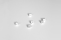 A dice roll is the very image of randomness. Every day since September 1, 1994, I have rolled a set of six dice, written down the number combinations and collected the numerical material in an ever-growing physical archive. The project is entitled "one and one hundred dice rolls a day". I use this numerical material as a starting point for transformations by translating each number, 1 to 6, into one sign, shape, sound or word, and by creating rules for how these translations will be used further. This method shapes the concrete outcomes and results in series or other forms of progressions and connections. What unites the different sub-projects that stem from the dice roll project is an exploration of the inherent nature of this special material and its potential for form, expression, and visibility, as well as a fascination with the diversity and variations generated, and with results I cannot fully predict. In this exposition, I will describe, make visible, and reflect on the working method, process, and the development of the formal language and expressions that have emerged from this ongoing, and in many ways interconnected, artistic project. The project is seen from a place (that of me, the artist's perspective) and is developed from a point (the dice rolls with dots representing numbers).