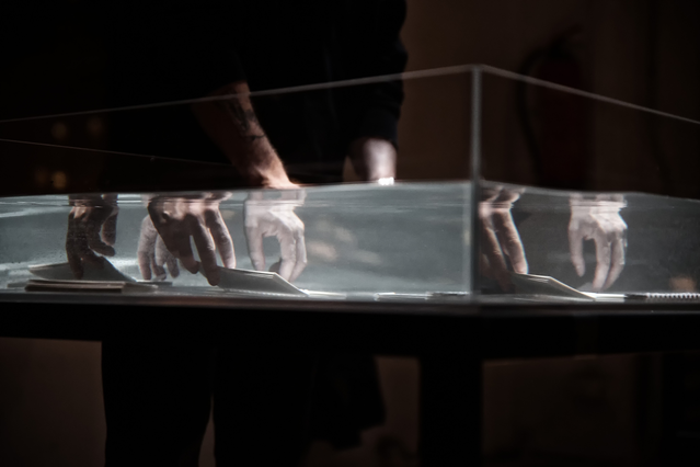 In D.O.T. project, the forces and fragilities of transforming marine ecosystems intersect with algorithmic-conditioned life and crossbreeding of diverse art disciplines and research fields based on collaborations, generating imaginary prototypes for future societal constructions in the floods.