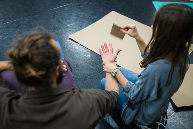 This article provides insight into the choreographic situation LUFTIG, where the idea of air as conveyor of tactile experience is passed on, reworked and performed by children and adults. It examines how shifting the focus from movement language to a distinct expressive idea affects the choreographic process, and looks at how involving young people as choreographers and choreographic material affects the aesthetic experience of the now for artists and audience.